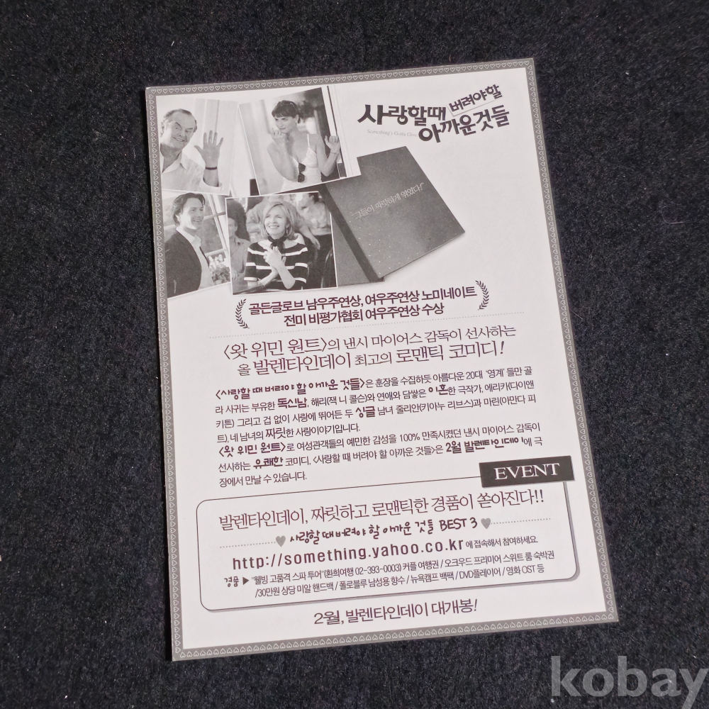 (천원경매)(((영화자료/영화전단카드/엽서))) 영화 사랑할 때 버려야 할 아까운 것들 (Something's Gotta Give) 카드 (2003)