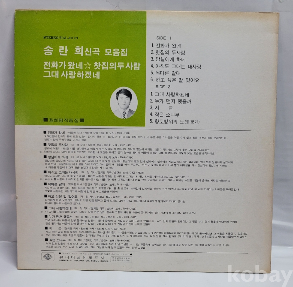| 자켓상태 | EX : 약간의 마모, 모서리 찢김 존재 | 음반상태 | NM : 개봉했으나 미사용급, 스크래치 없음 | 발매정보 | 초반 | 가사지여부 | 무 |