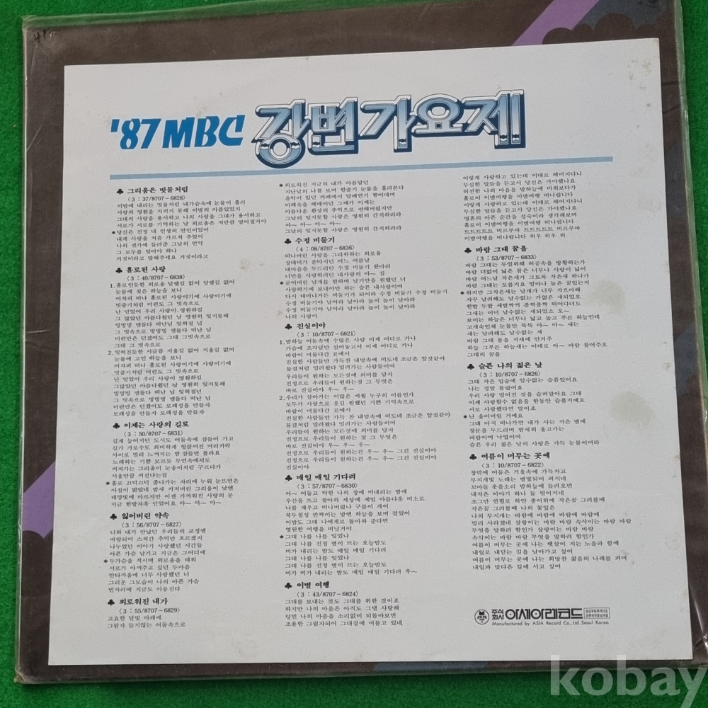 *중고 물품이므로, 스크레치로 인한 튐이나 잡음이 있고, 백화현상으로 인한 잡음이 있을 수 있으며, 자켓 또한 일부 터지고 떨어져 나가고, 테이핑 및 제거 흔적이 있으며, 물얼룩 및 오염이 있을 수 있으니 예민 하신분은 입찰 자제 바랍니다.