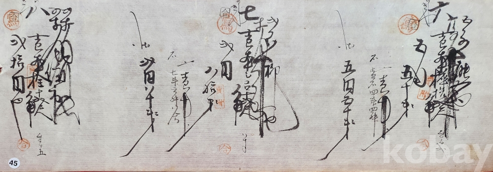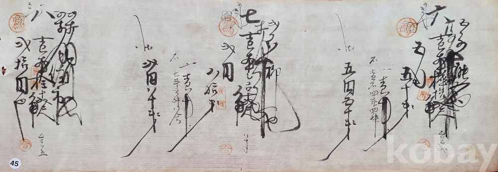 105년 전의 서체로 노후감과 탈색 작은 천공은 보입니다,