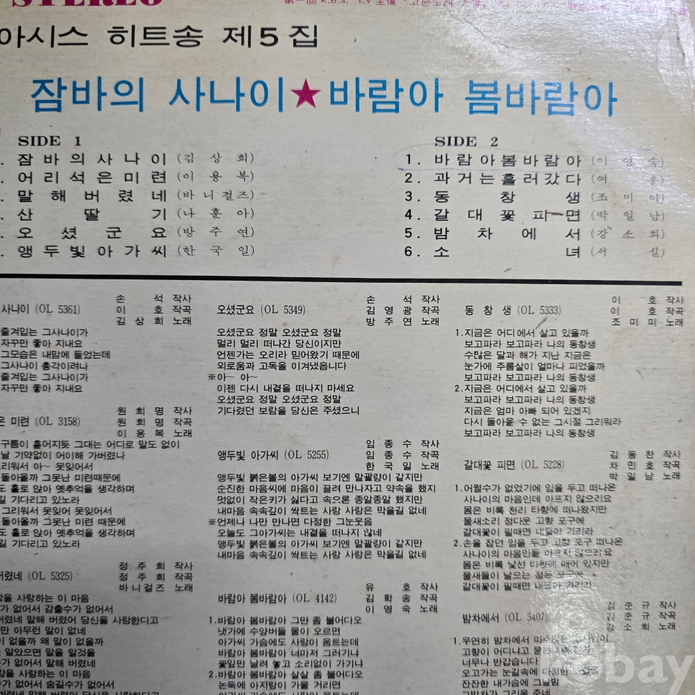 | 자켓상태 | VG : 주름, 접힘, 모서리 찢김 다수 | 음반상태 | VG : 생활 기스 다수, 가벼운 노이즈 존재 | 발매정보 | 초반 | 가사지여부 | 무 |