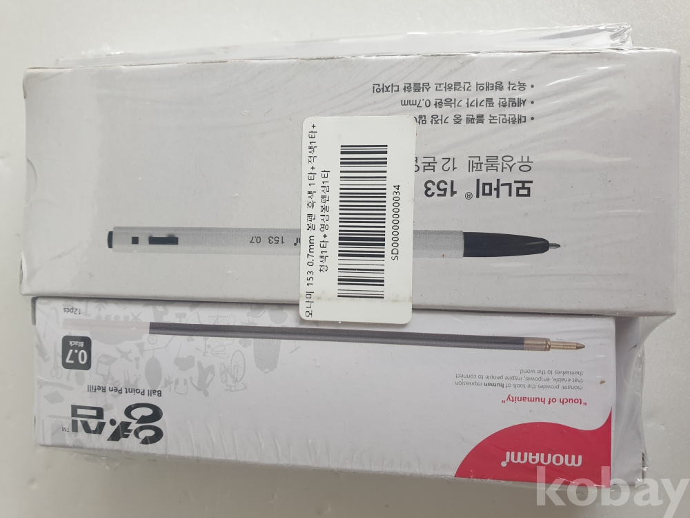 [천원경매] 1-470 모나미 153볼펜(흑, 청, 적 각 12개입 1박스씩, 흑색 리필용 12개입 1박스, 래핑되어있는 미개봉제품)