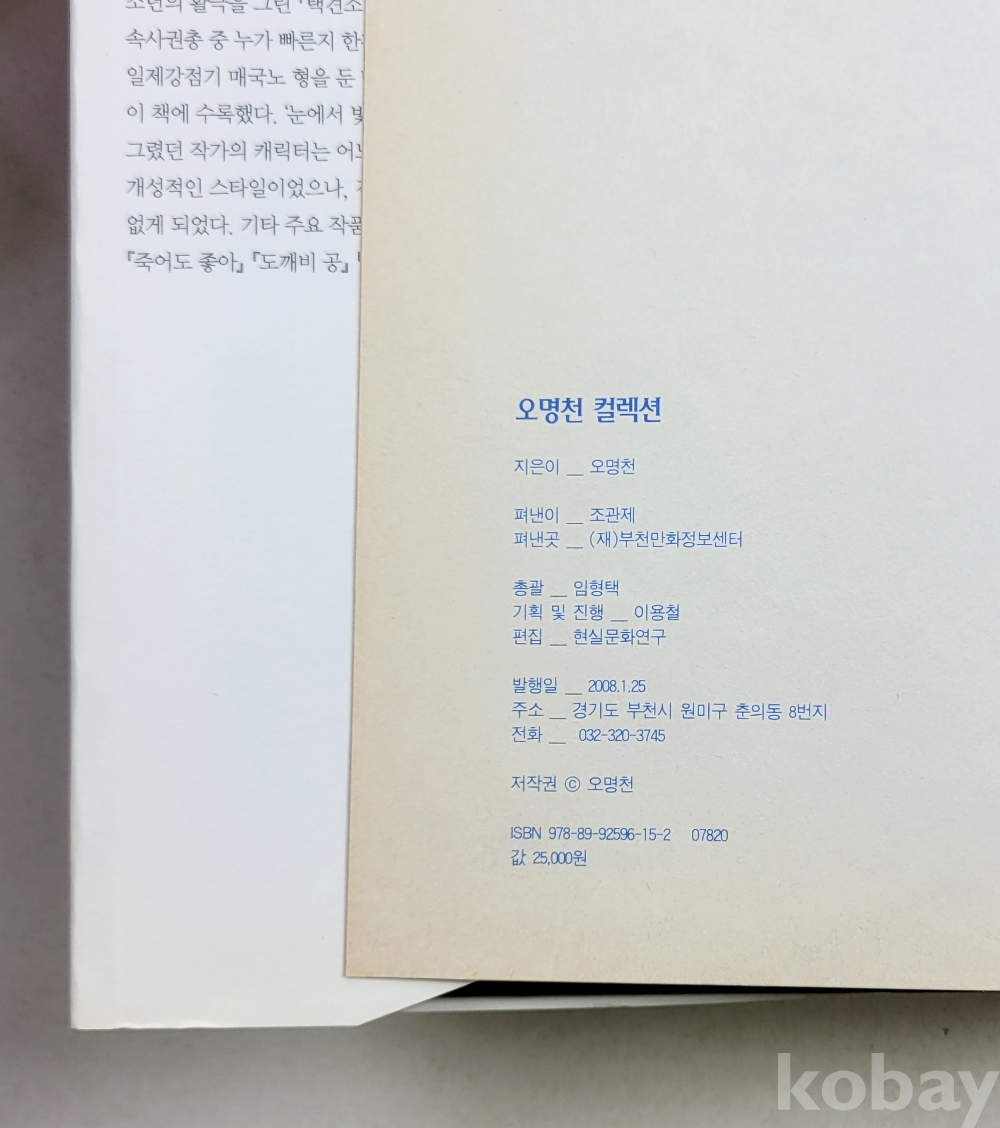 물 품 명 | 오명천 컬렉션 / 한국만화걸작선 (8) / 2008년 초판 / 부천만화정보센터 |