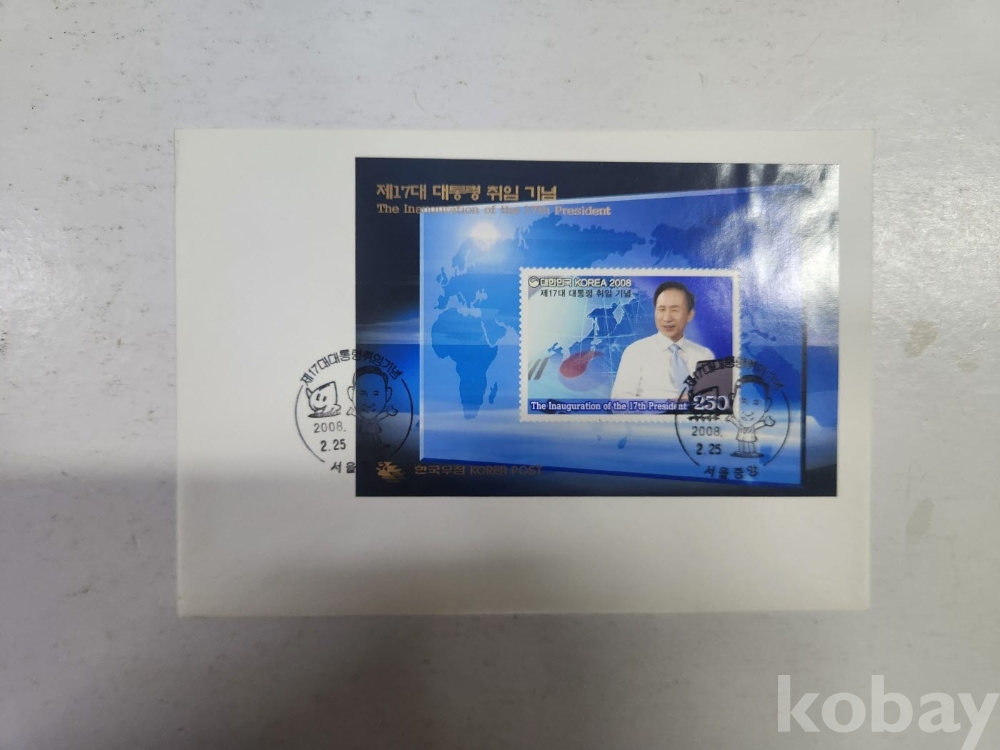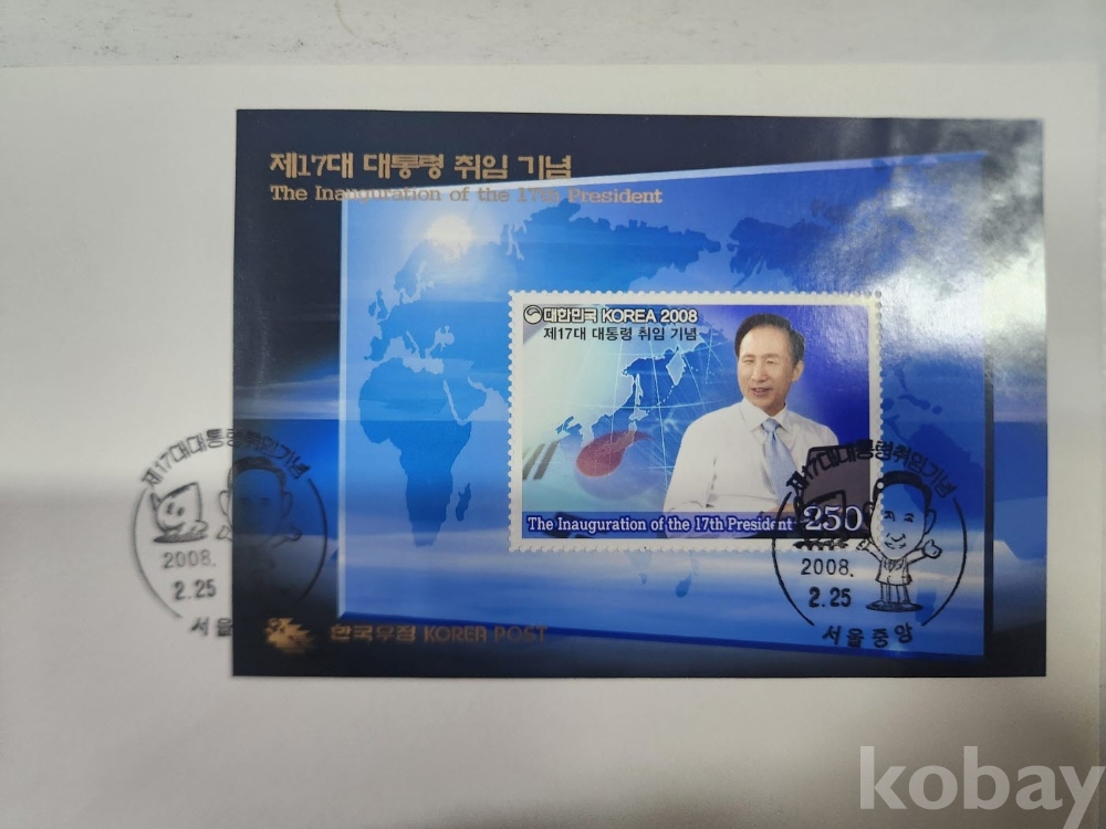 제17대 이명박대통령 취임 기념 우표와 우표가 붙어있는 봉투입니다.