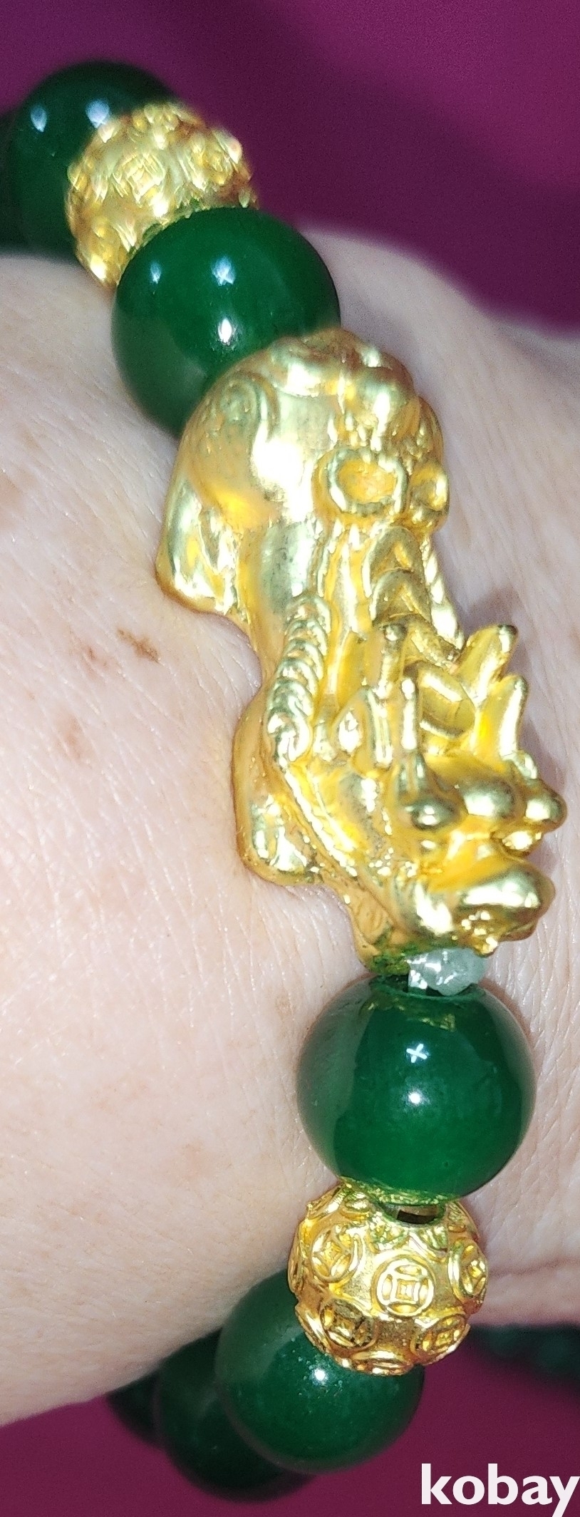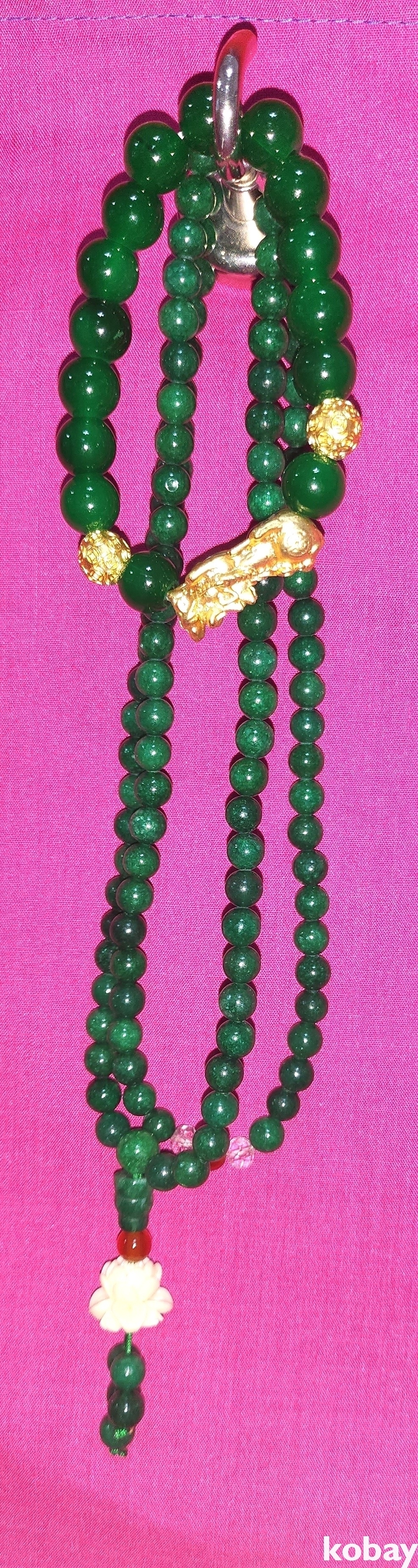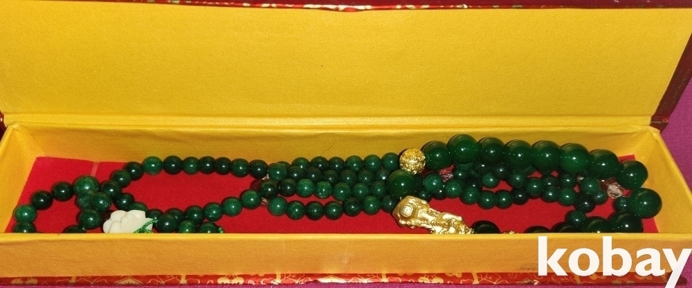 용(龍)형상 펜던트 푸른색 물질로 완성된 목걸이와 팔지입니다,