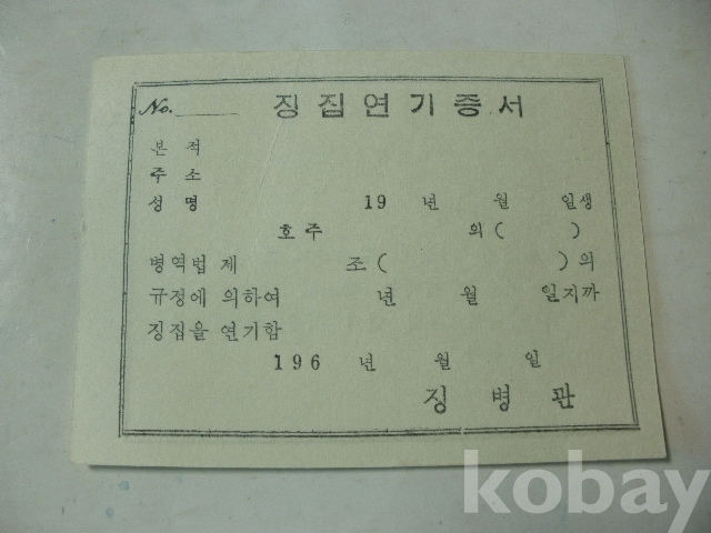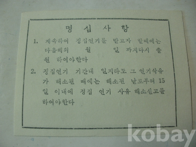 징집 연기 증서 - 양식 (1960년대, 징병관)