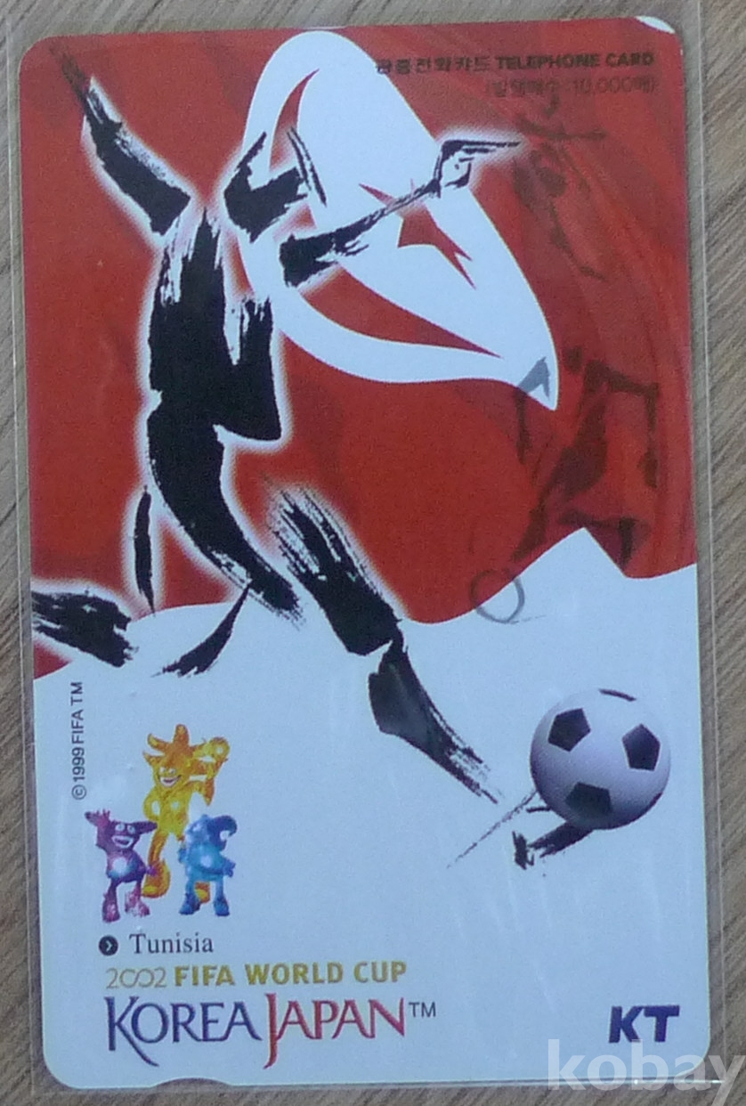 앞면 참가국 튀니지 국기와 2002한일월드컵 마스코트