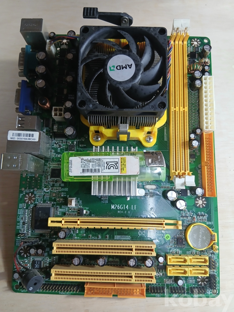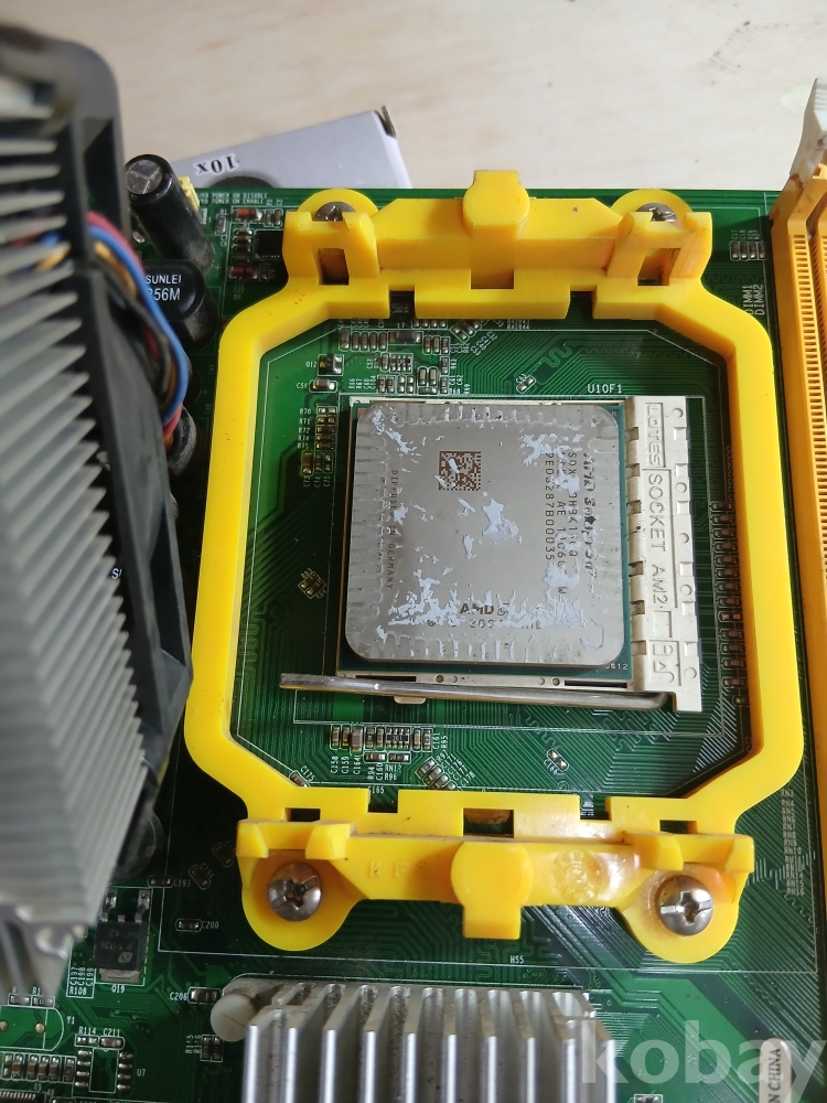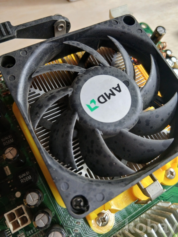 AMD CPU (쿨러 포함)가 장착된 컴퓨터 메인보드