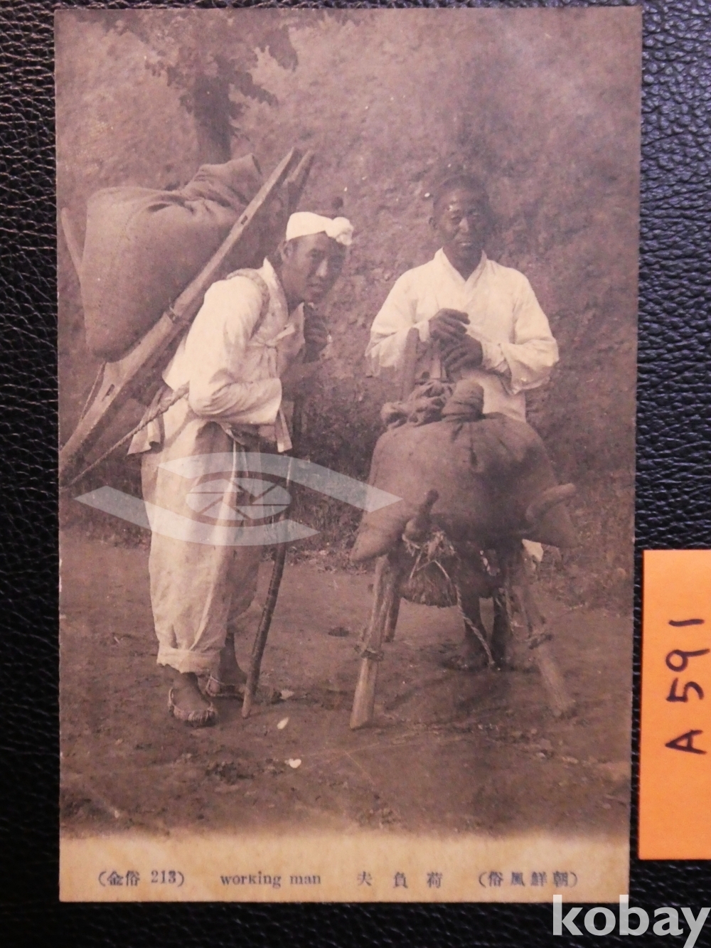 ▣근대한국엽서(진본): [조선풍속] 조선인 지게꾼의 모습/1매/귀함/사자료/일제강점기 사진엽서, 그림엽서, 회엽서. A591