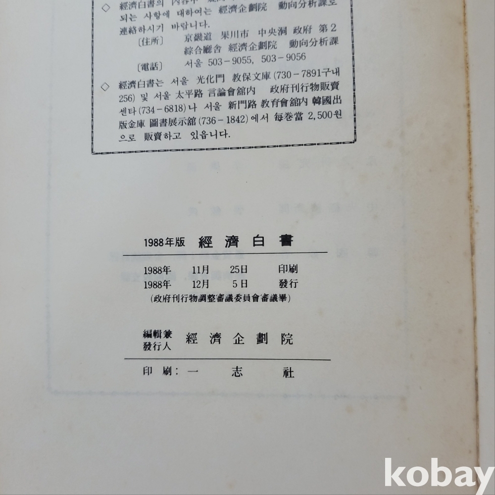 [희귀본] 1985년, 1988년 경제백서 2권 일괄 ; 1980년대 일지사 발행본입니다.