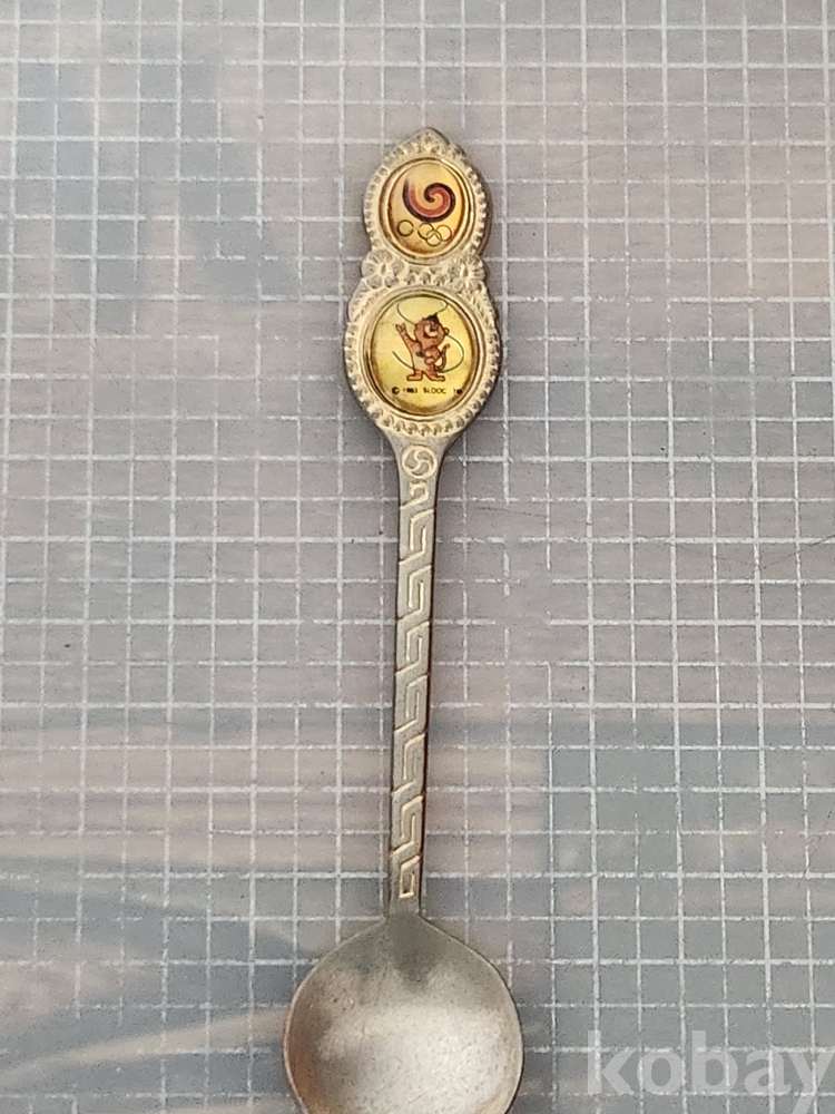 스푼 상단에는 올림픽 오륜기와 호돌이 캐릭터가 새겨져 있으며, 금색과 은색이 조화롭게 어우러져 있습니다