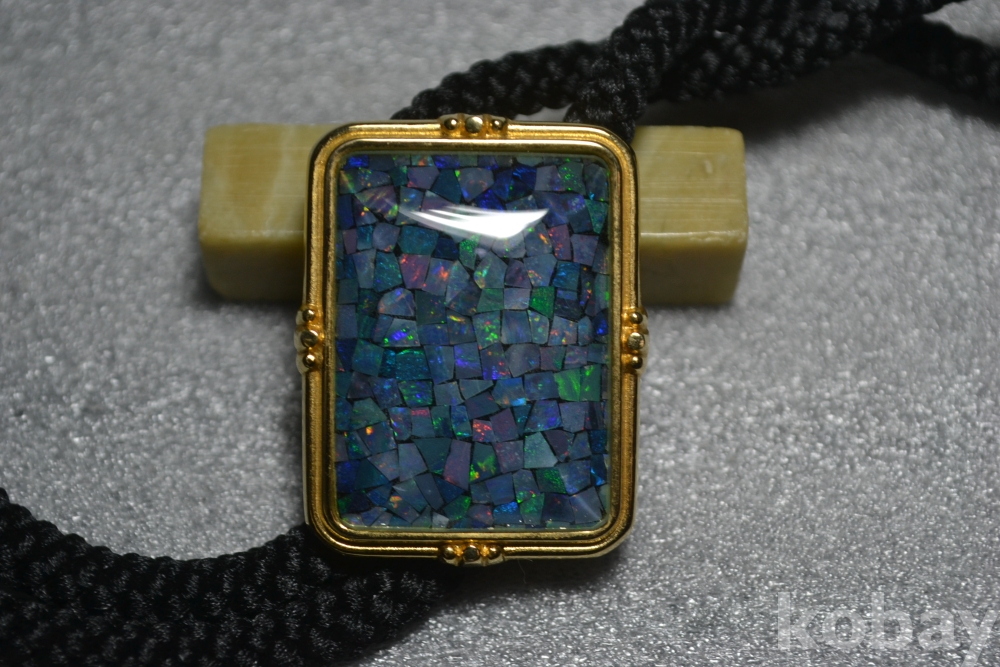 반짝이는 색상이 매우 화려하고 아름다운 모자이크오팔 작품 입니다.~
