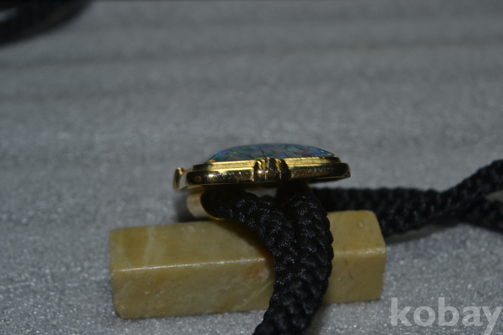 " 흔치않은 종류~ 매우 이쁜 아름다운 모자이크 오팔보석 ".. 모자이크오팔 장식판 지름 2.7 cm X 2 cm~ 묵직하고 튼튼한 금속메탈 디자인~ 색상이 화려하고 아름다운 오팔보석 장식 루프타이 목걸이 / 깨끗하고 좋은 보존상태~