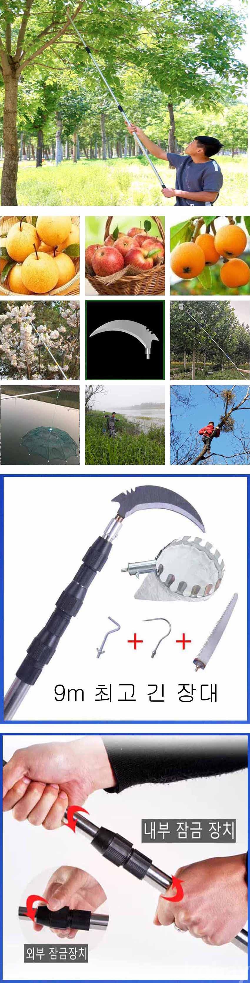 높은나무의 과일을 주머니에 담아 잡아당기거나 비틀어 꺽을수있으며