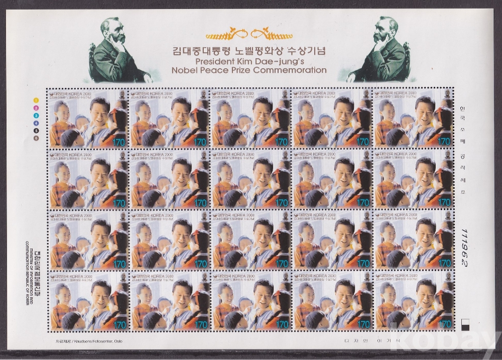 - 미사용 2000년 김대중 대통령 노벨평화상 수상 기념 전지