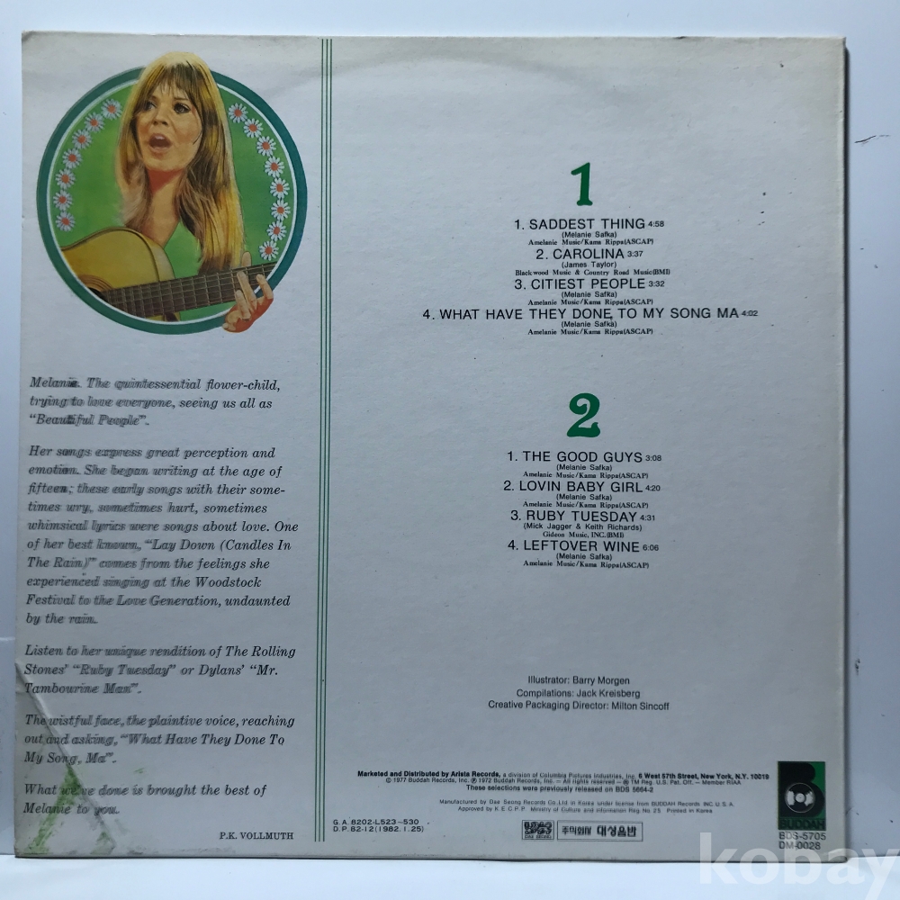 LP 1/ 17-17 The Best of Melanie_멜라니 베스트 ` 82 수입 자켓 EX 알판 EX