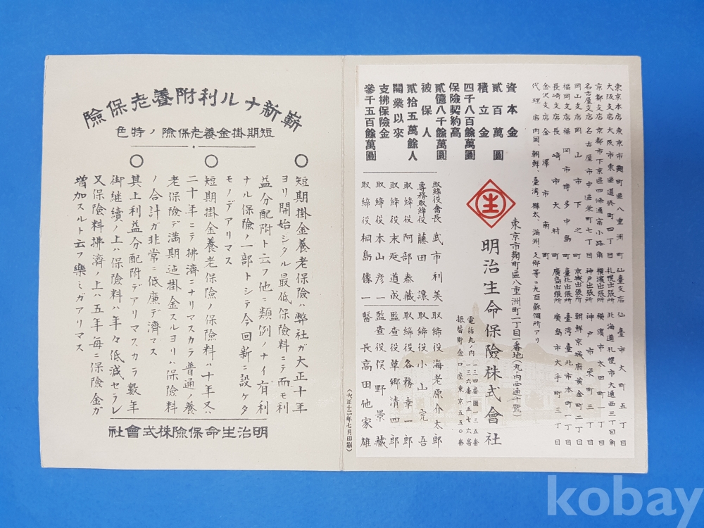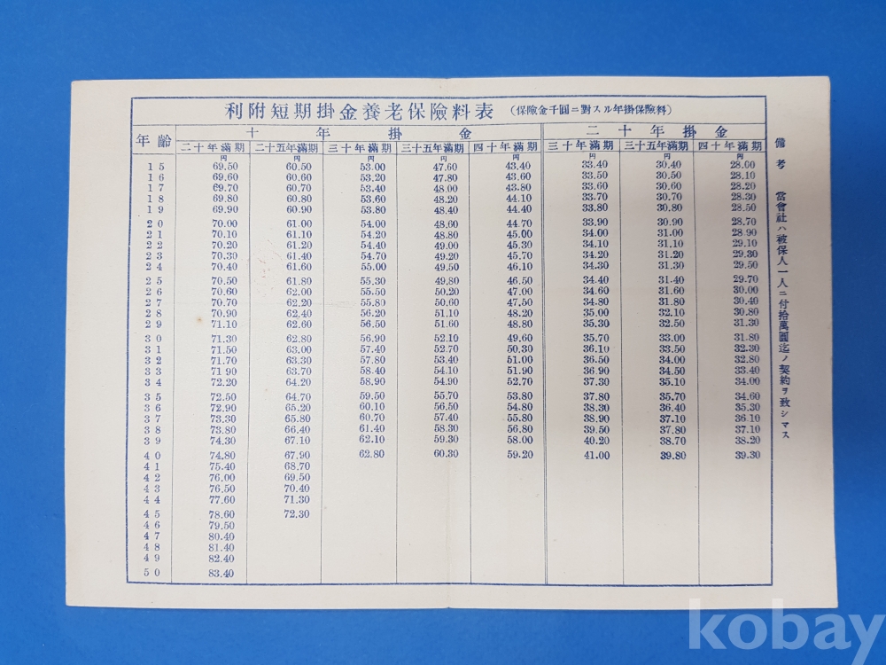 **** 일제시 明治생명보험주식회사 [利附단기부금양로보험료표]