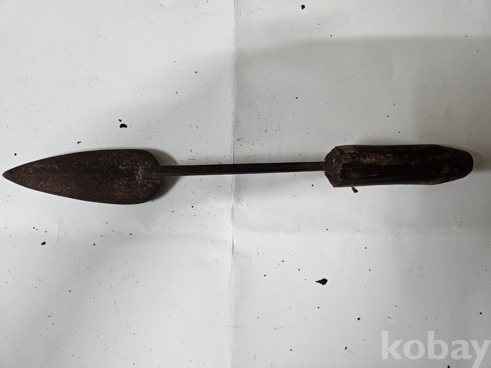 현재 상태: 전체적으로 양호한 편이나, 무쇠 부분에 세월의 흔적(녹, 변색)이 있으며 나무 손잡이 역시 고재의 질감이 느껴집니다. (사진을 자세히 확인해 주세요.)