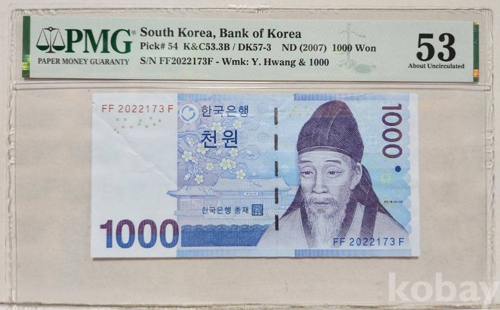 -대한민국 현행권 1000원 PMG 53 등급 입니다.