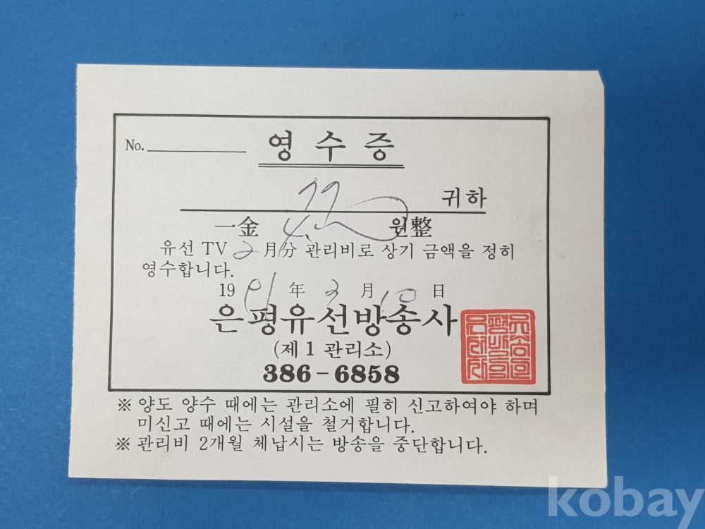 **** 은평 유선방송사 TV월 관리비 영수증/9매
