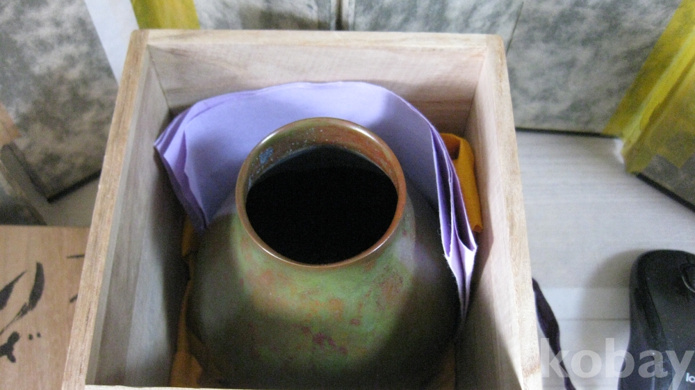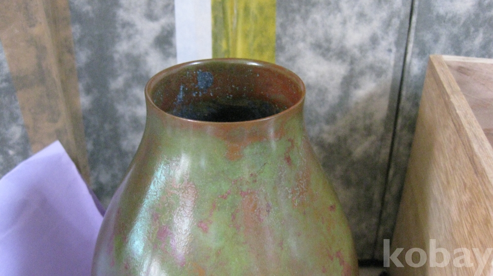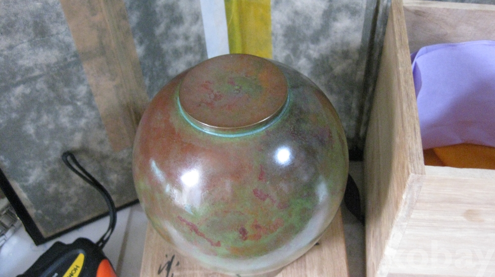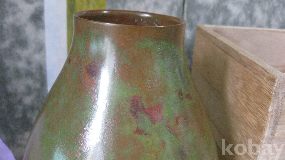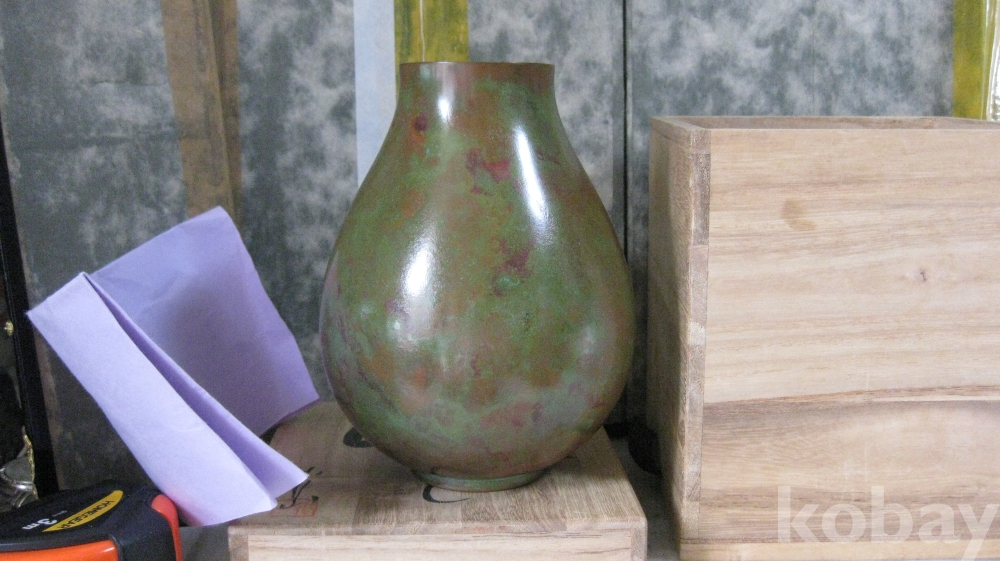 아름다운 청동 화병 임니다 묘한 색감 묵직한 화병 이며 작가의 메모 를 가진 현대 청동 화병 임니다 상자는 세월의 흔적이 보임니다