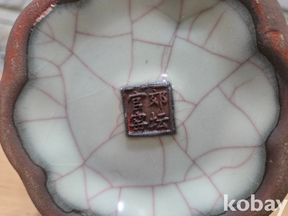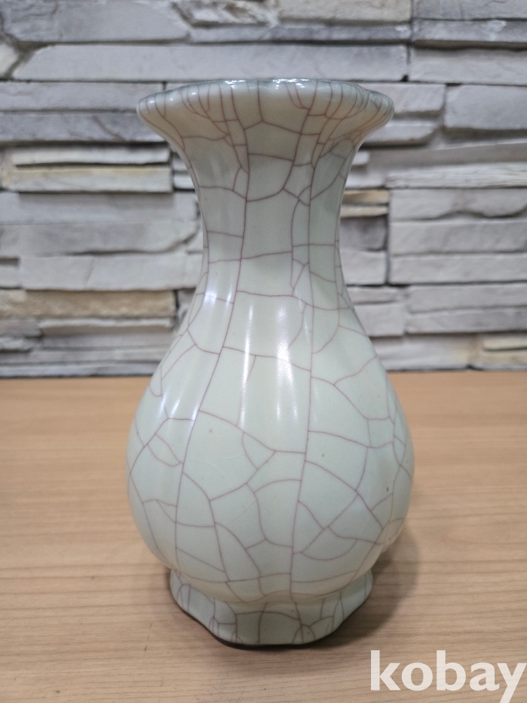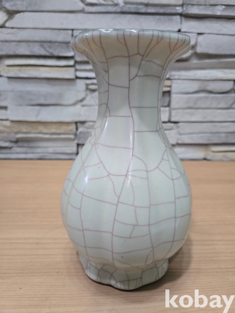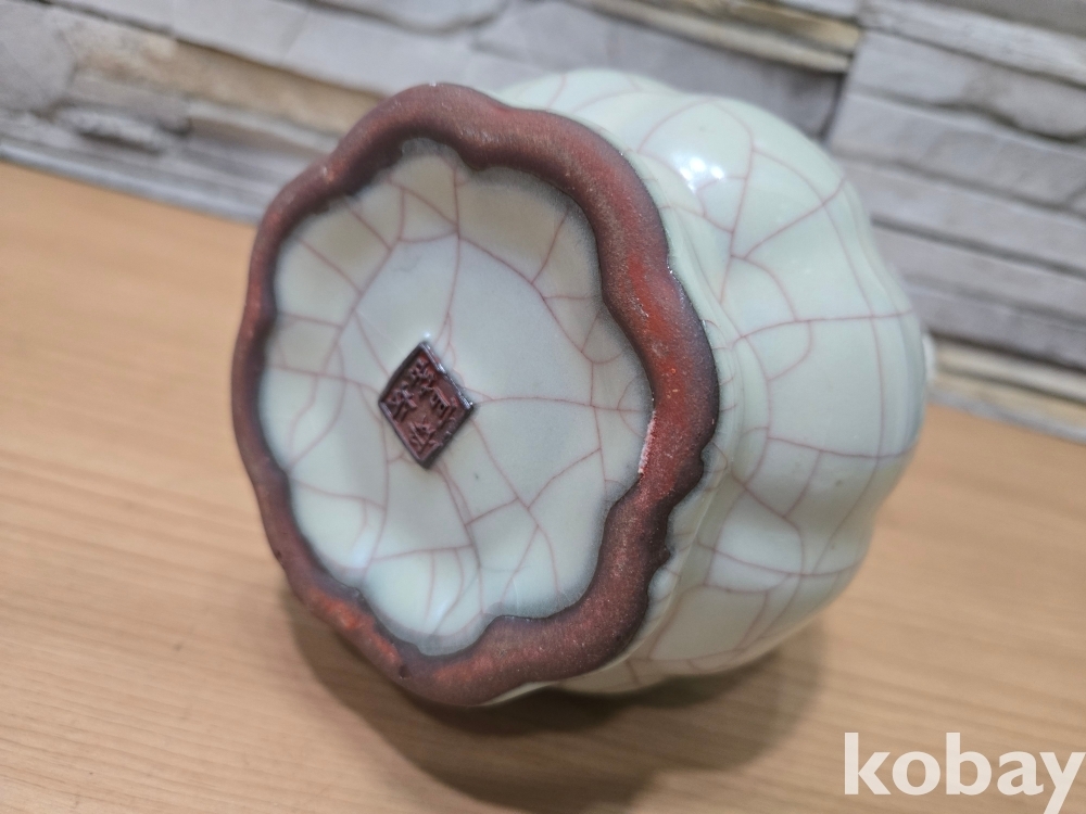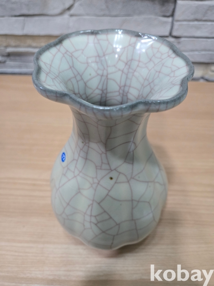 입과 바닥이 꽃 잎 모양의 주름 도자기 입니다.