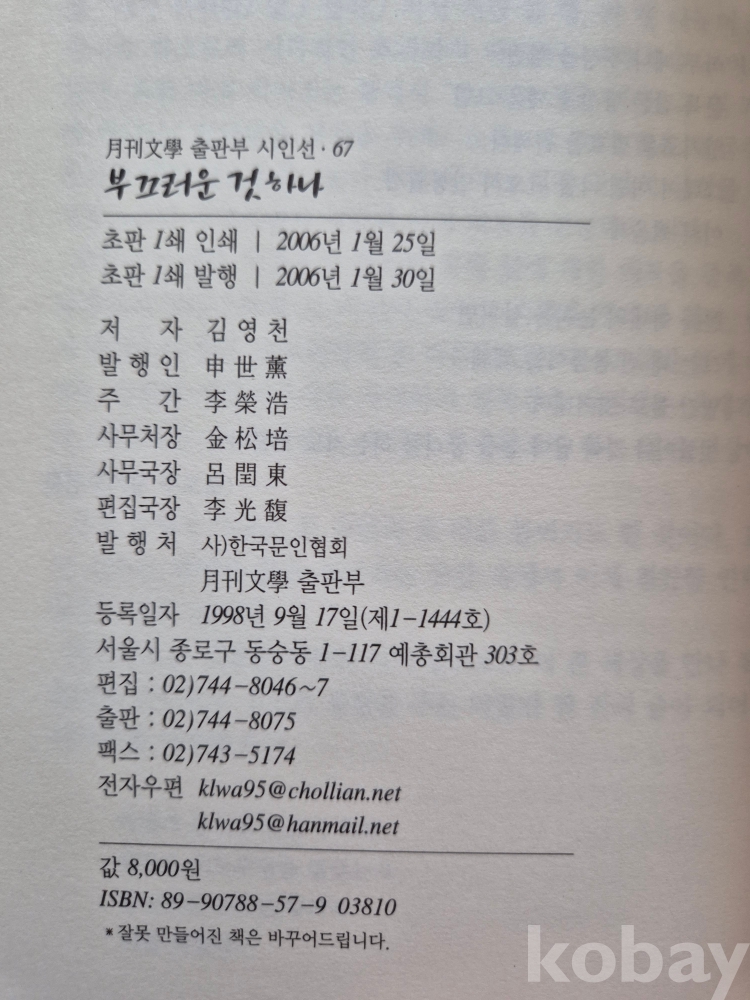 月刊文學 출판부에서 '月刊文學 시인선[67]'으로 발행.