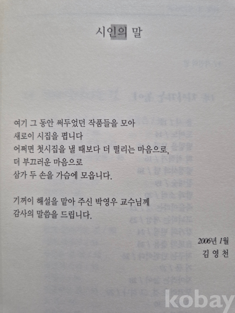 2006년 발간한 제3시집 『부끄러운 것 하나』