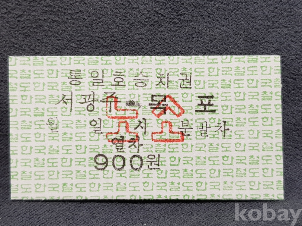 - 미사용 통일호 승차권 노소 " 서광주 ▶ 목포 " 900원