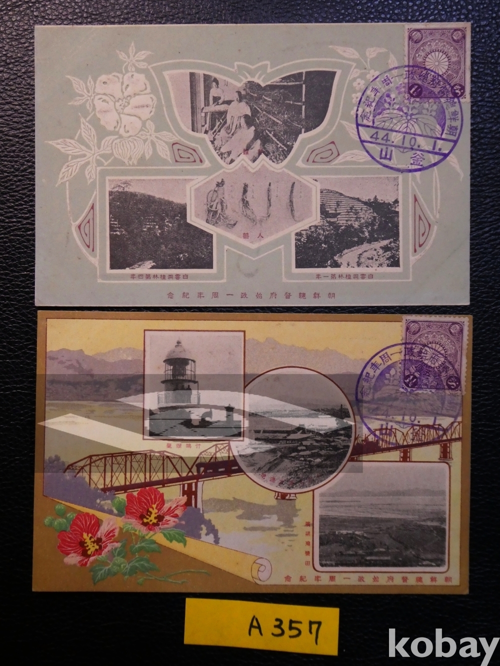 ▣근대한국엽서(진본): 조선총독부 발행 시정1년 기념(1911) 2매 완전 세트. 부산 초일 기념인.