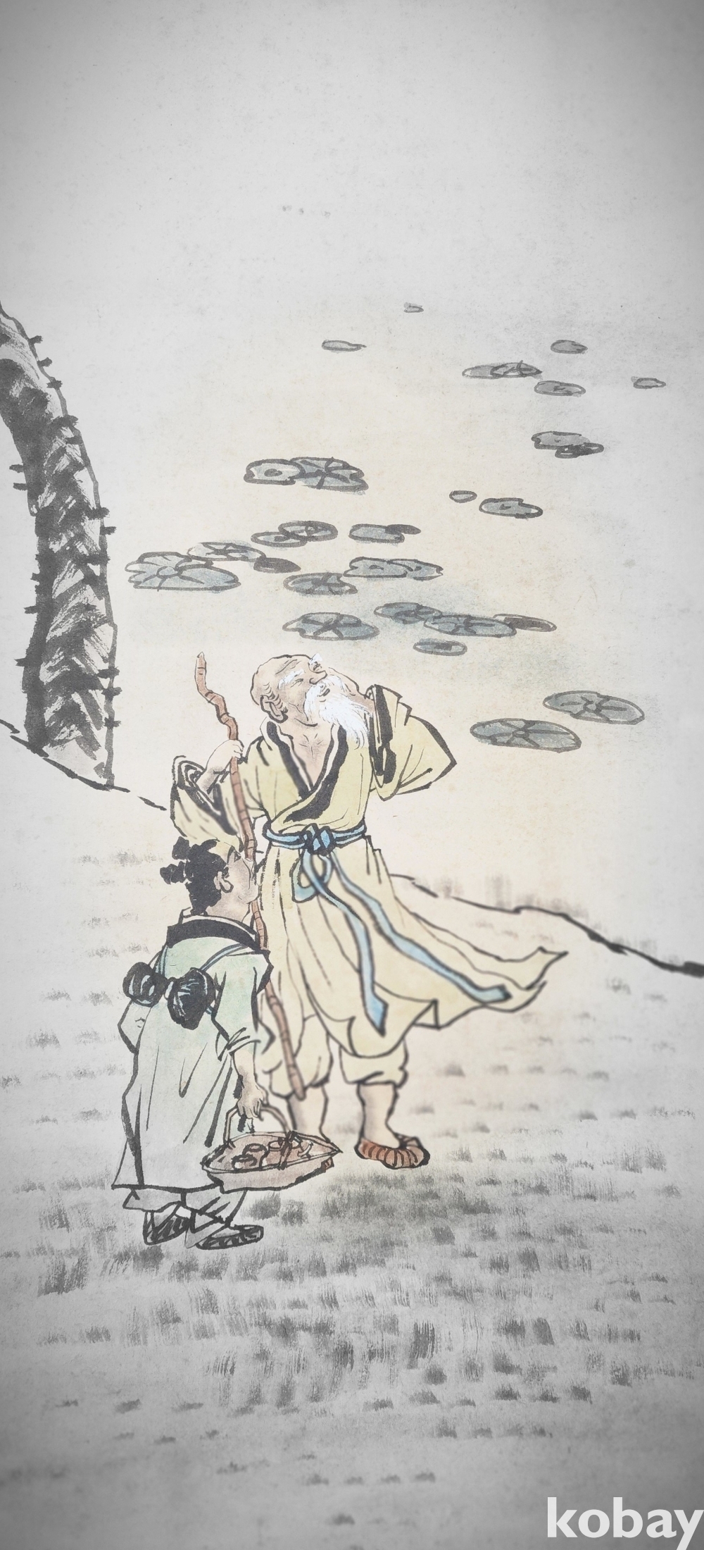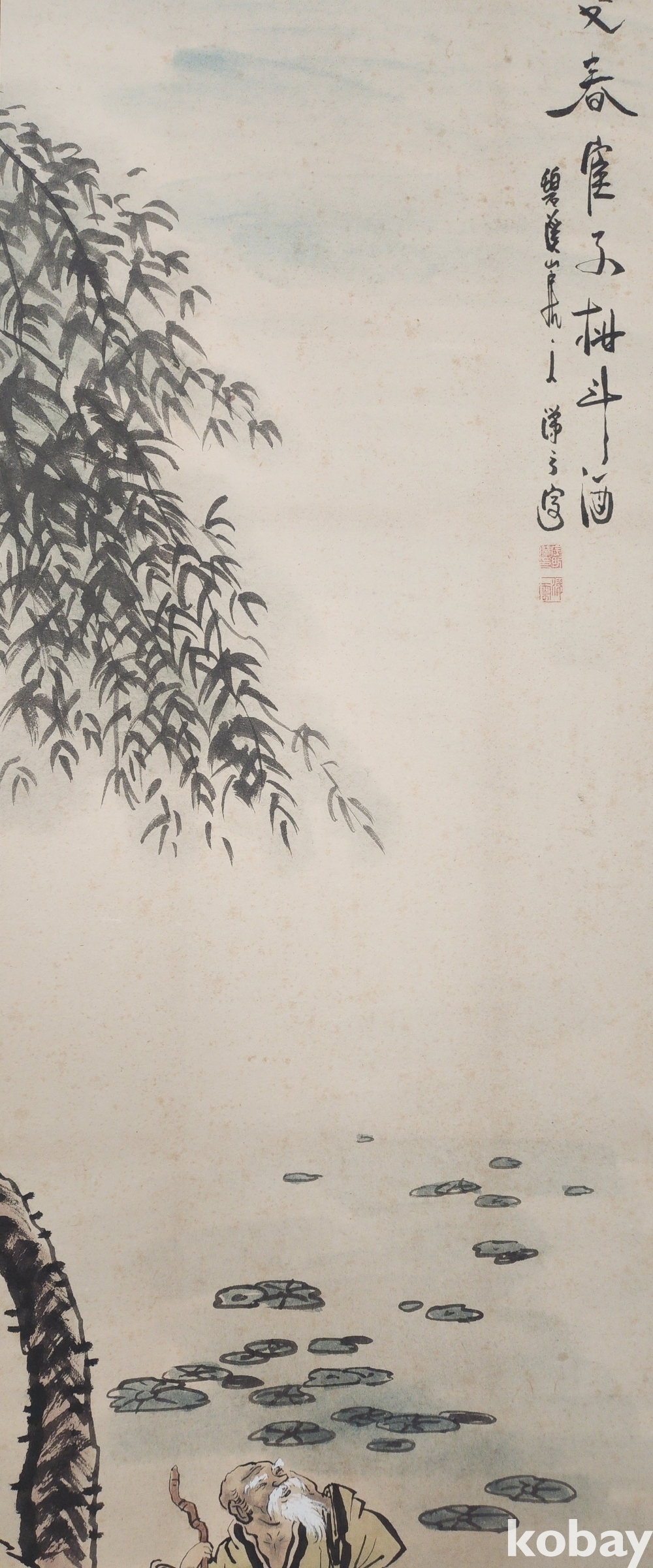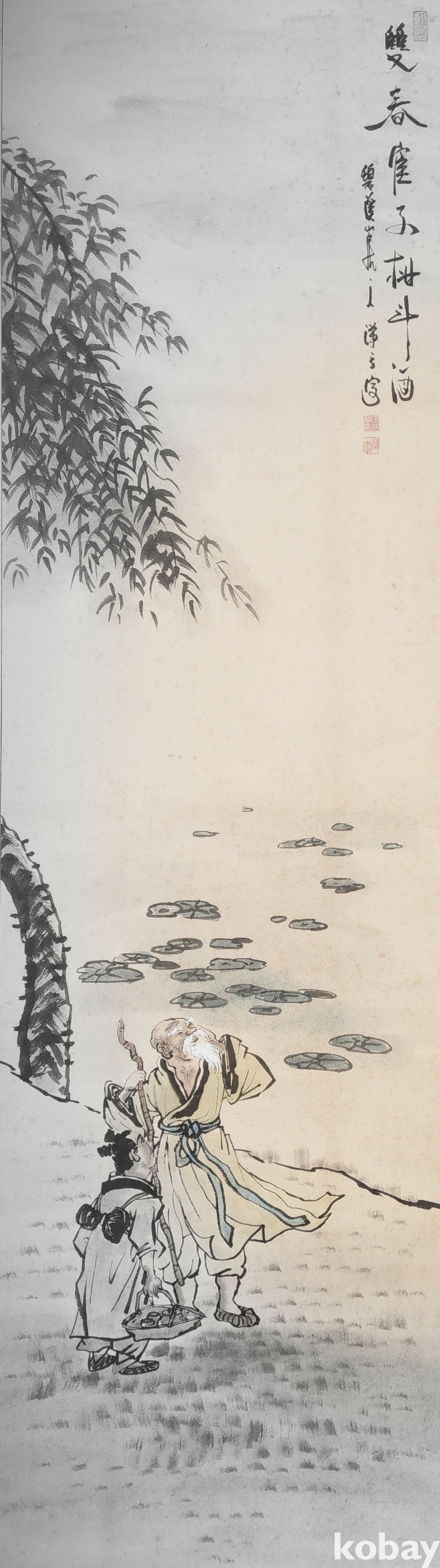 작가 수결이 보이는 종이에 채색된 인물화입니다,