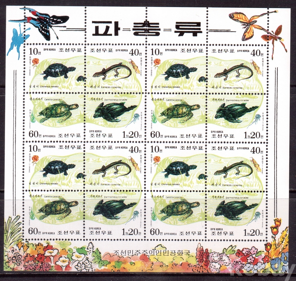(동물) 북한 1998.12.15 파충류 sheetlet of 16 MNH