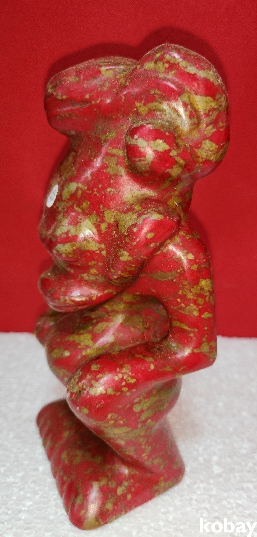 무릎을 꺾고있는 인물상 머리위에는 동물의 머리가 조각되어 있습니다,