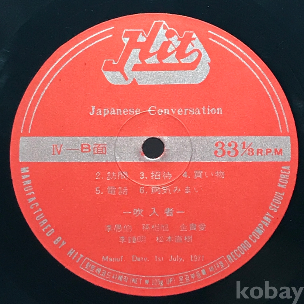 10인치 LP 83,623-242 Japanese Conversation . 자켓 無 알판 EX 71 년제작 국내반