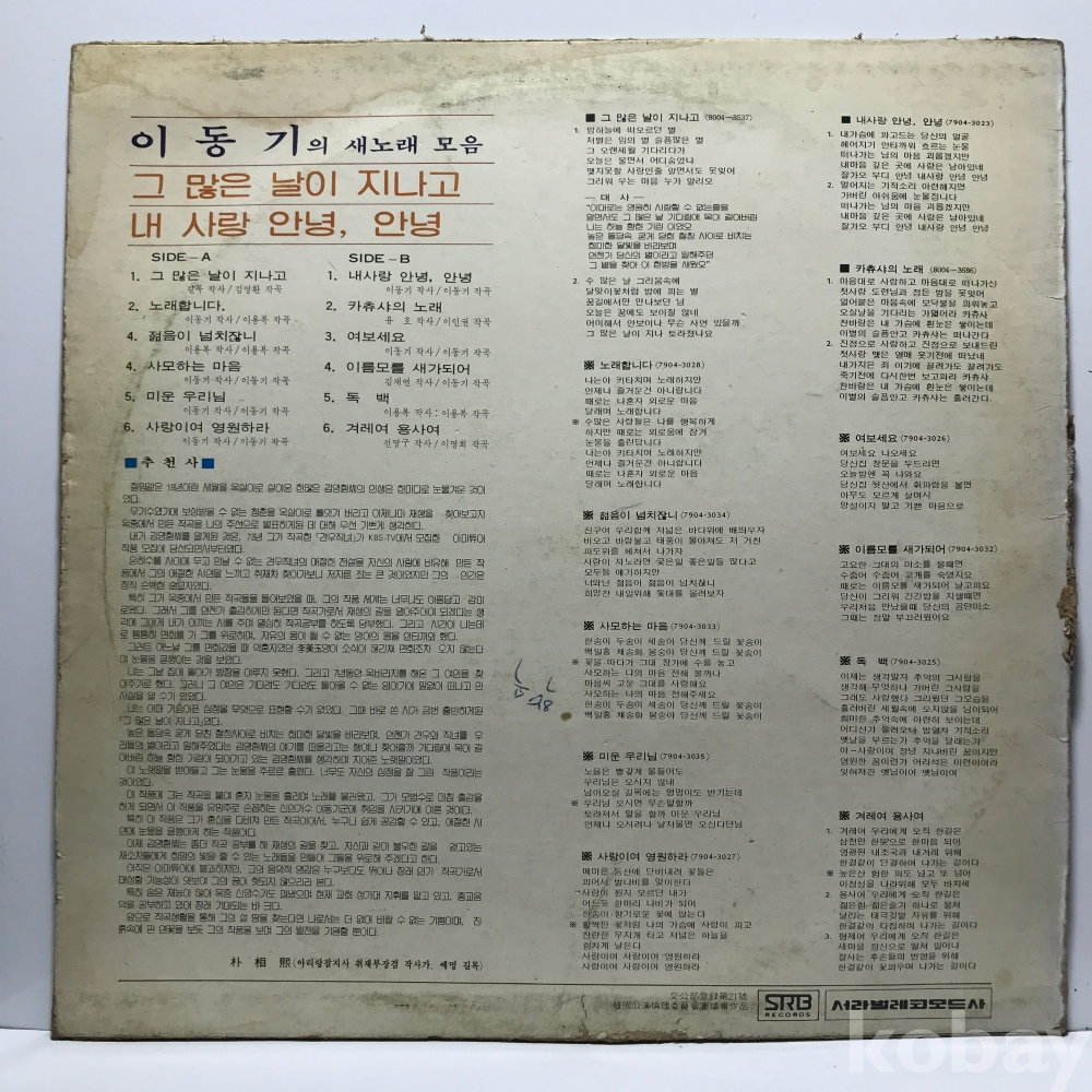 LP 83,740-93 이동기 - 새노래 모음 (그 많은 날이 지나고 / 내 사랑 안녕, 안녕) . 자켓 VG+ 알판 VG+ 80 년 국내반