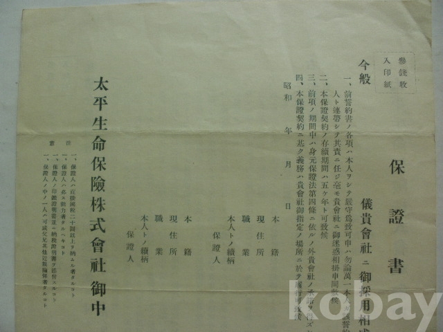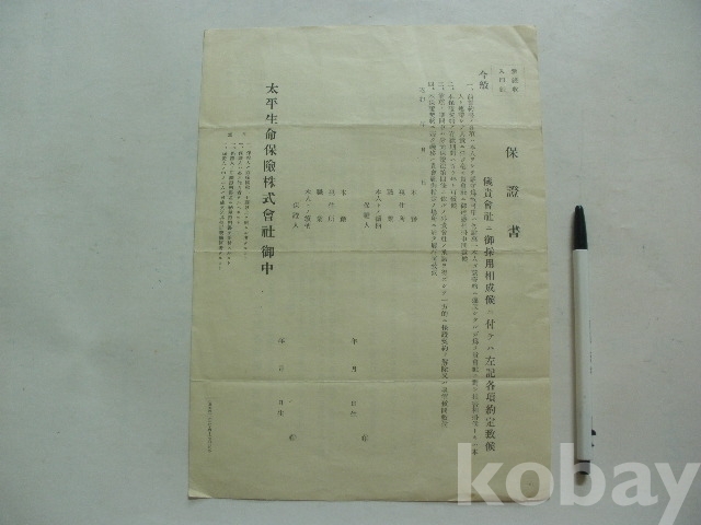 태평생명보험 - 보증서 양식 (소화년간)
