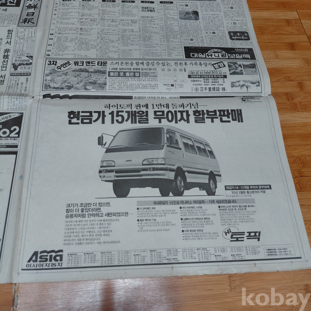 아시아 자동차 미니버스 토픽 광고 조선일보 92년2월18일 올려드립니다
