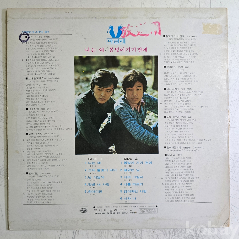 | 자켓상태 | VG : 주름, 접힘, 모서리 찢김 다수 | 음반상태 | VG : 생활 기스 다수, 가벼운 노이즈 존재 | 발매정보 | 초반 | 가사지여부 | 유 |