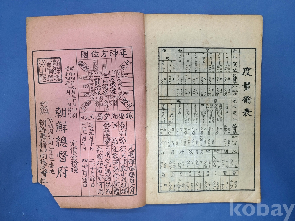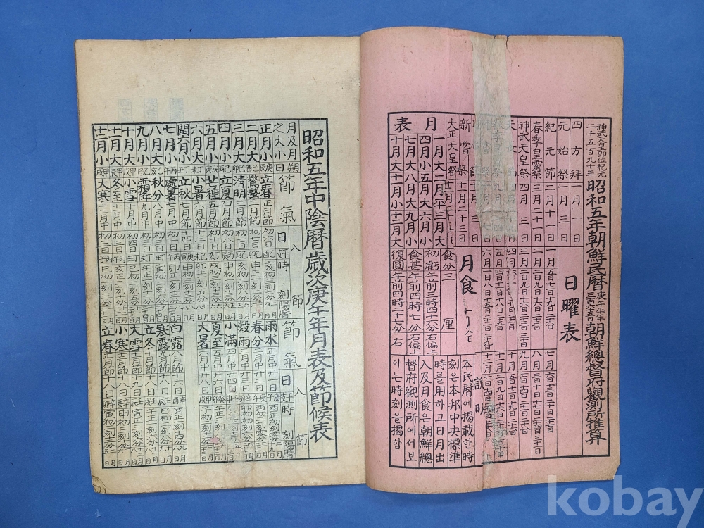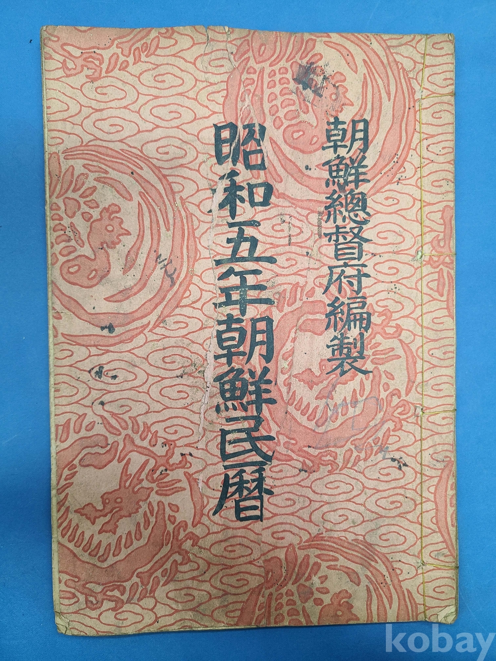 朝鮮總督府編製 소화5년 朝鮮民曆/앞표지 보수함,뒷표지 하단부 일부 탈락