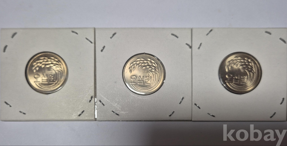 1981년에 한국은행에서 발행한 50원 동전 3개입니다.