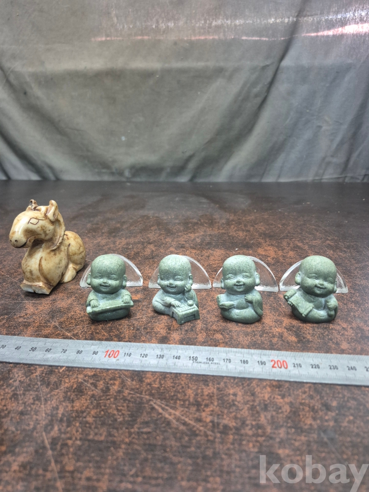 동자승 소품 4점 유리소품 4점 홍산문화 말 동상1점 (깨짐있어요) 9점 일괄 3*4*5