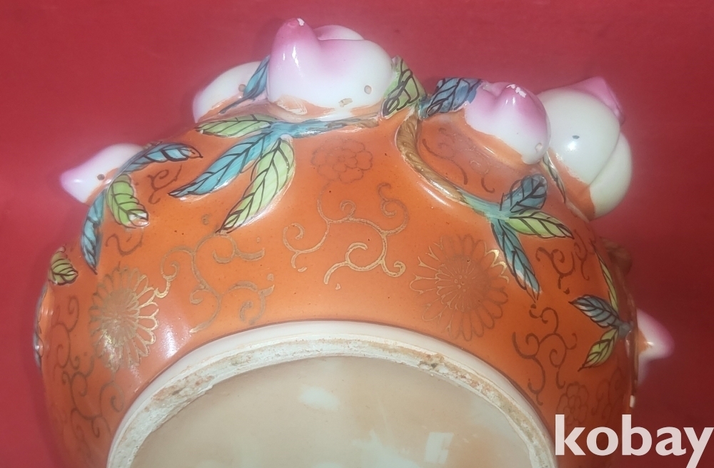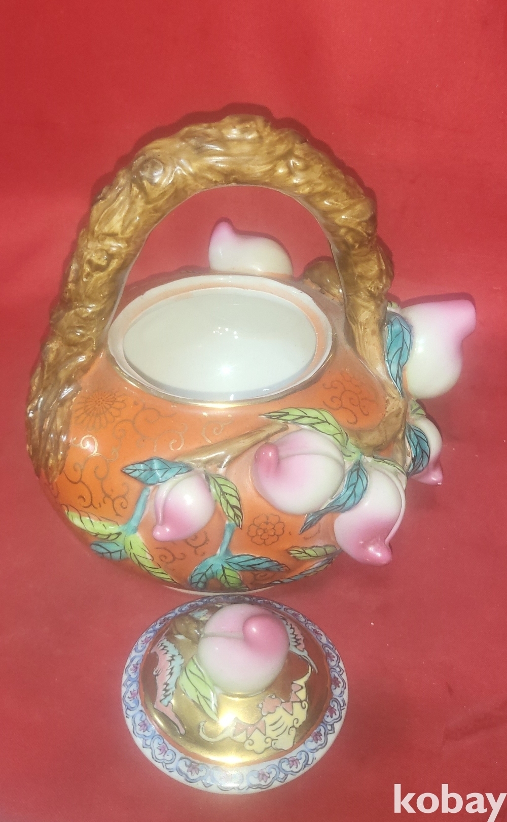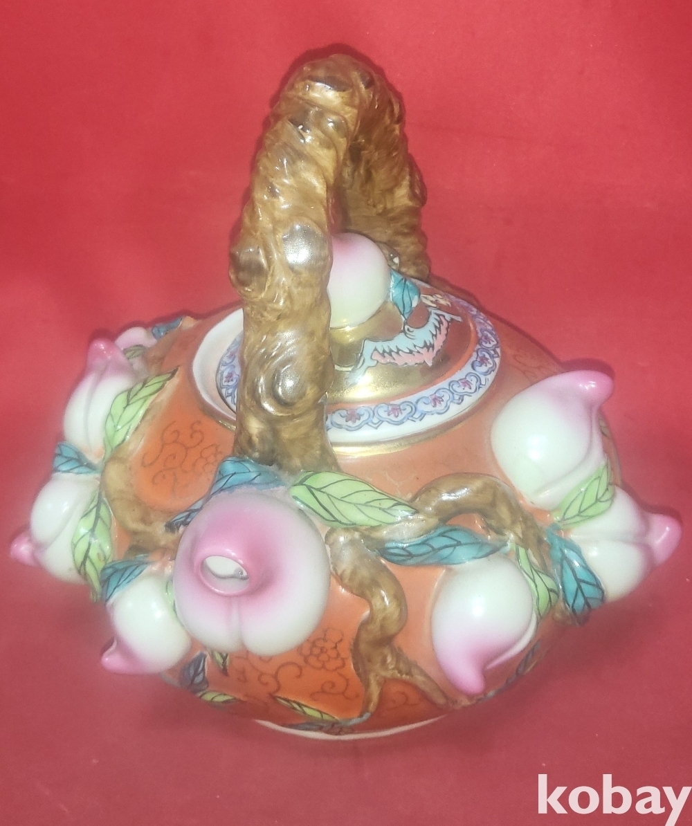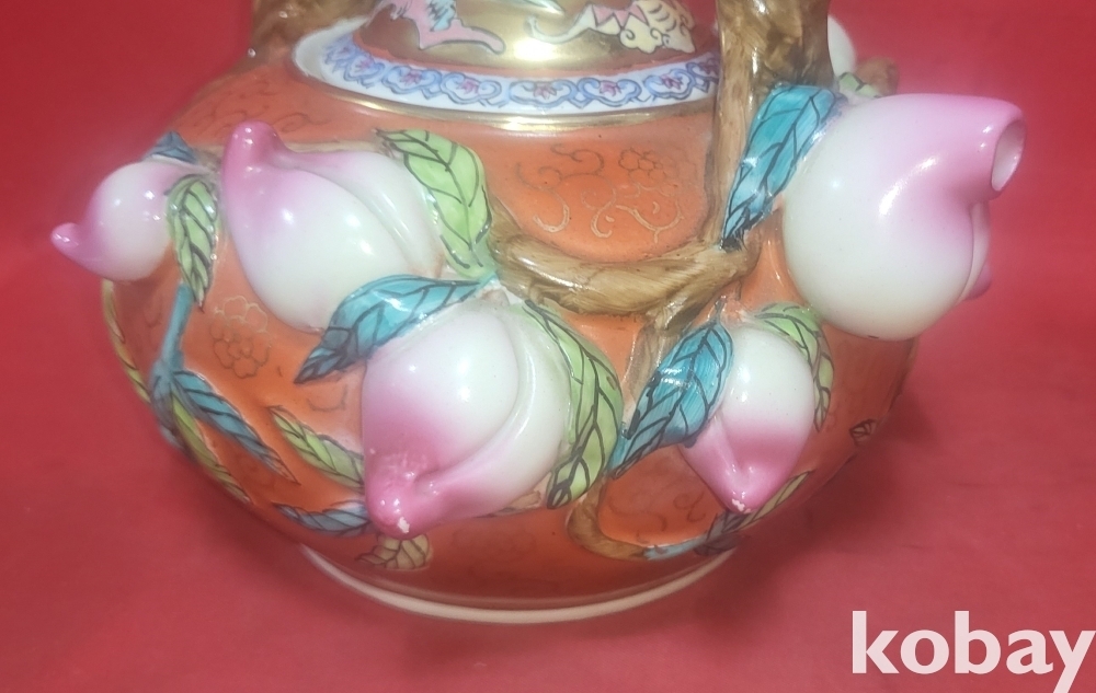 금채색에 천도 복숭아 문양 미사용 주전자입니다,