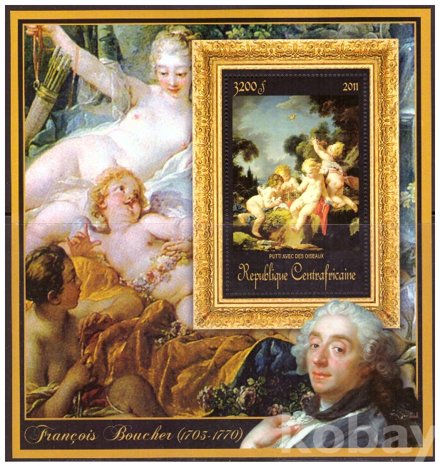 (누드명화) 중앙아프리카 2011 Francoise Boucher 새와 푸티 deluxe sheet MNH