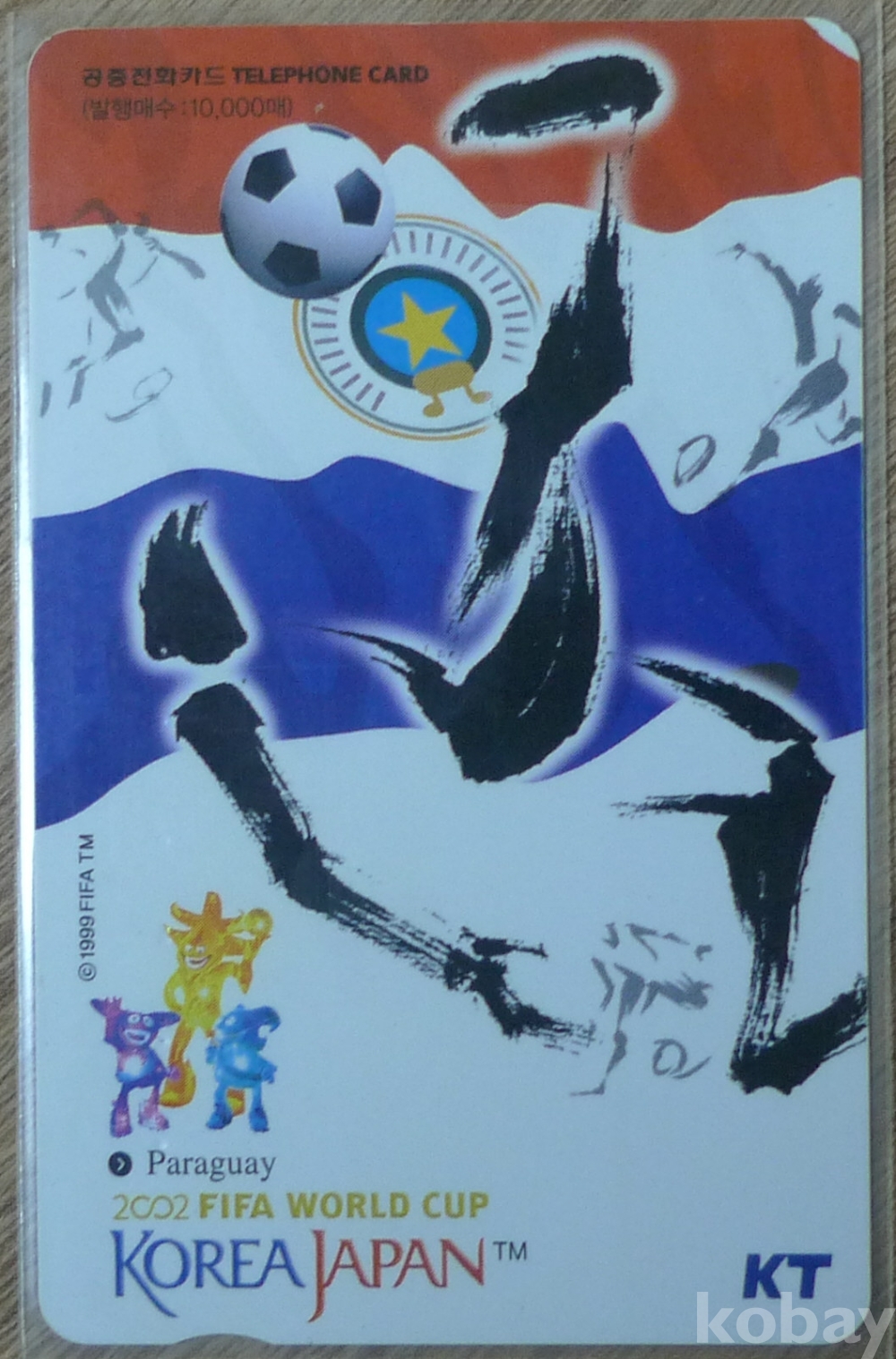 앞면 참가국 파라과이 국기와 2002한일월드컵 마스코트