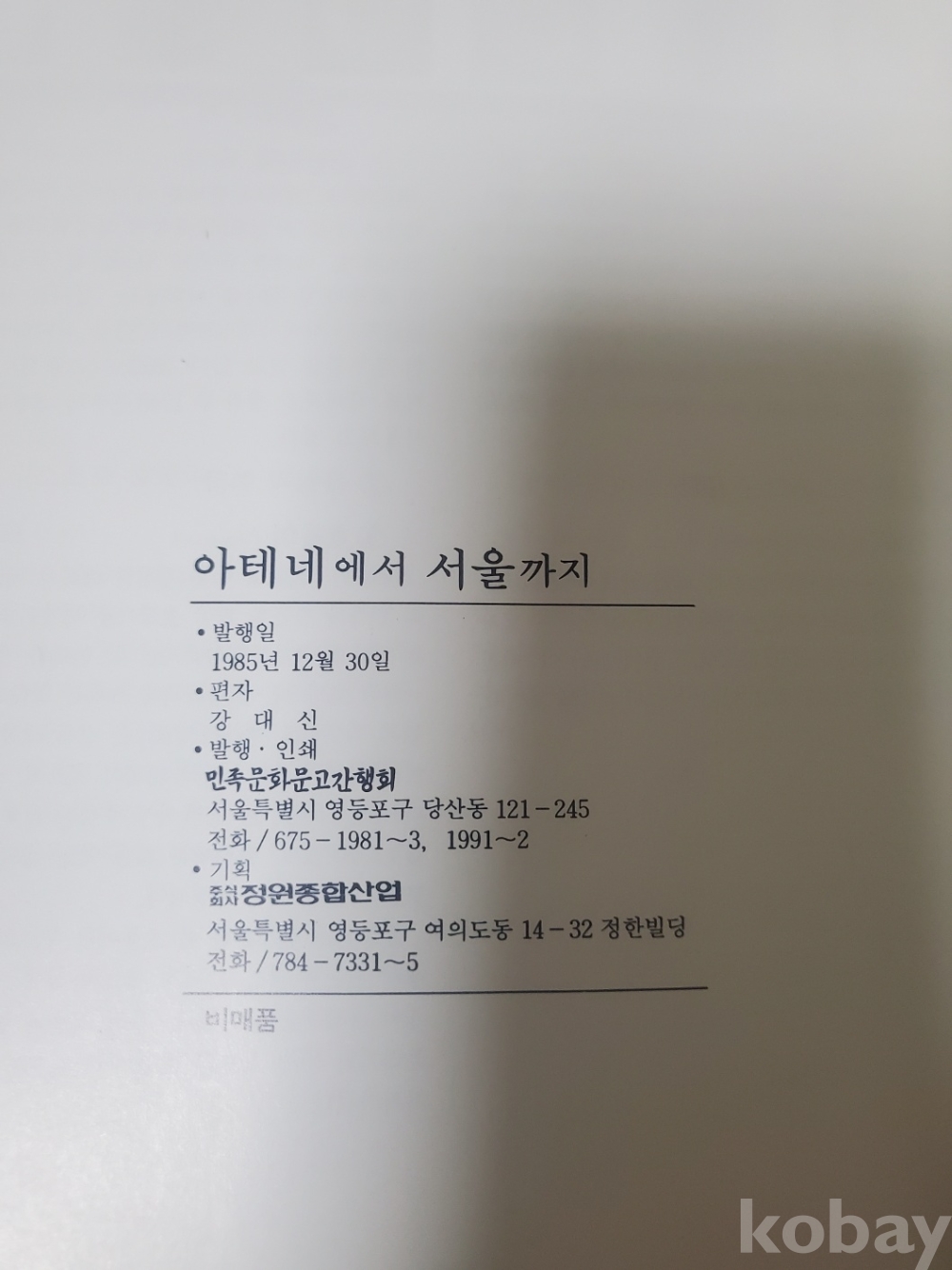1. 아테네에서 서울까지, 민족문화문고간행회, 주 정원종합상업, 1985년, 147쪽, 비매품, 상태 상, 사진 참조