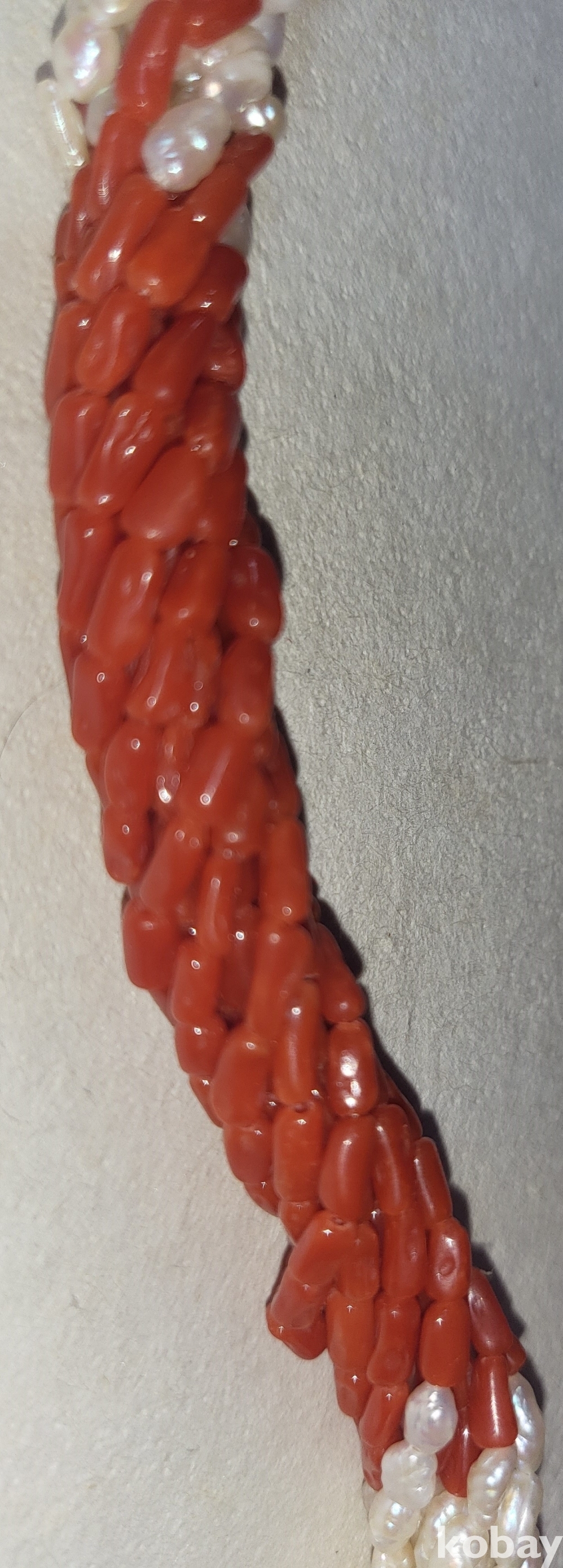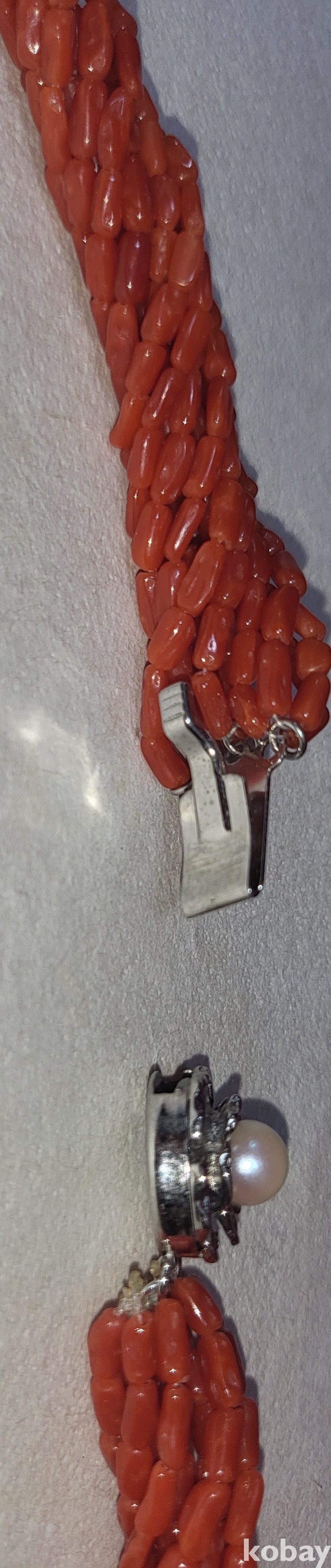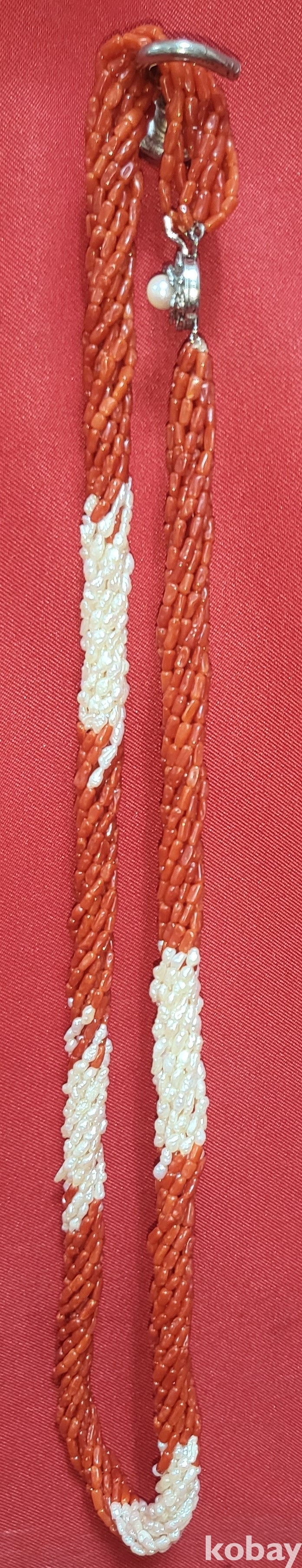 천연 홍산호와 진주로 완성된 꽈베가 목걸이로 고리는 천연 진주와 순은(純銀) 입니다,