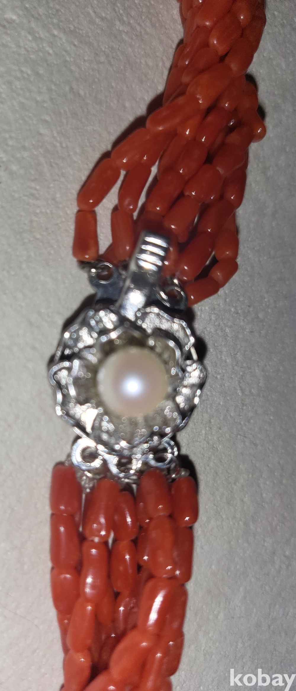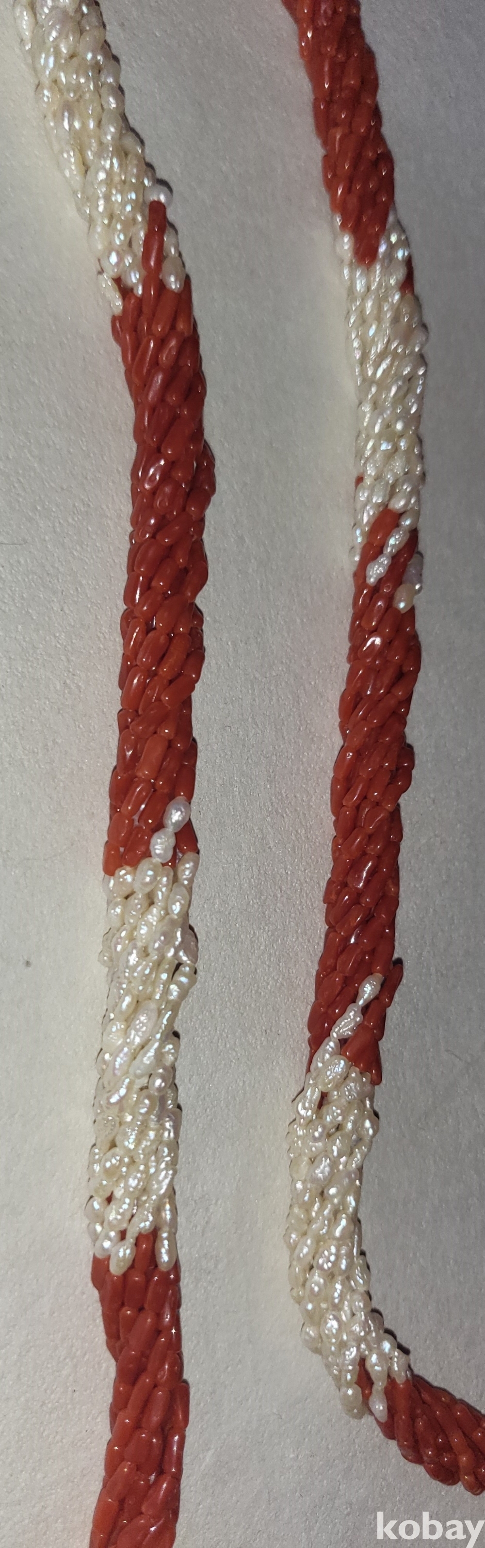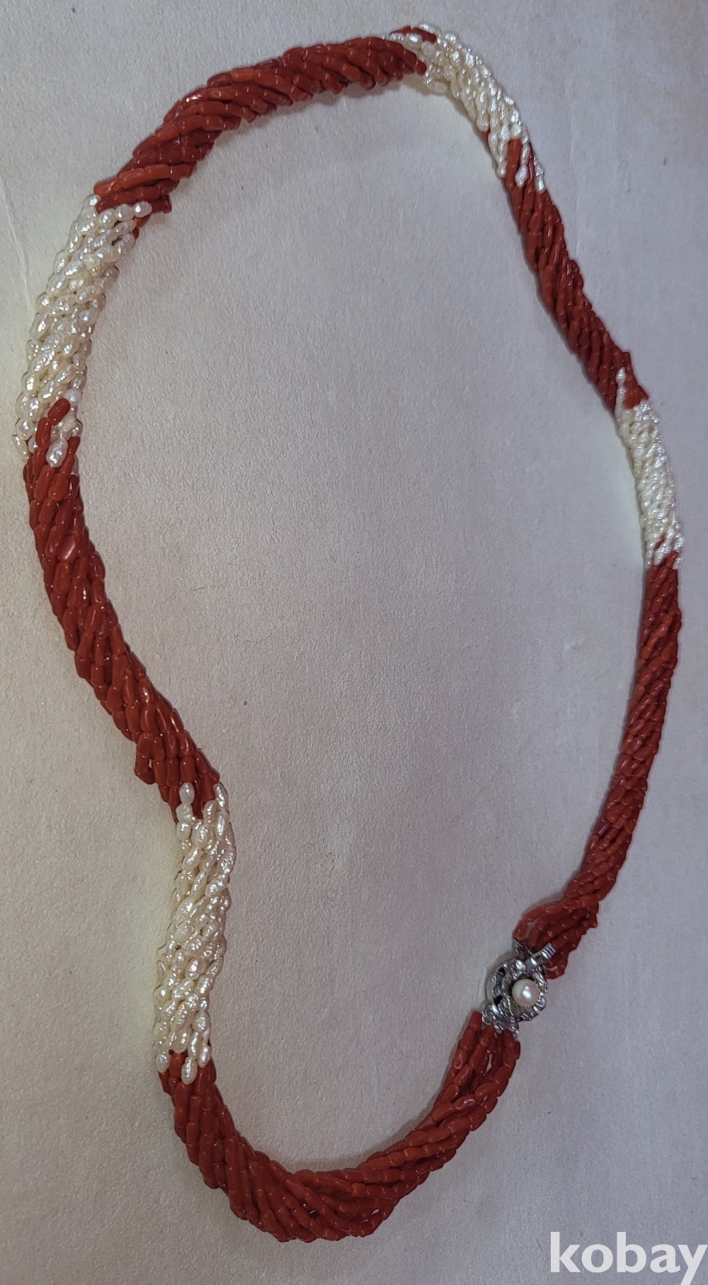 천연 홍산호와 진주로 완성된 꽈베가 목걸이로 고리는 천연 진주와 순은(純銀) 입니다,