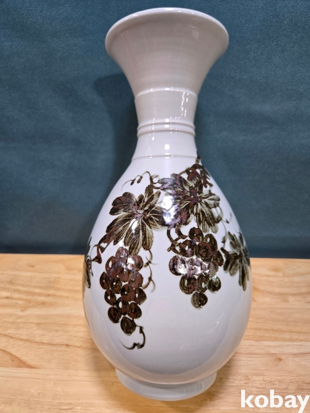 철화로 포도 문양을 아름답게 표현한 입이 큰 도자기 입니다.