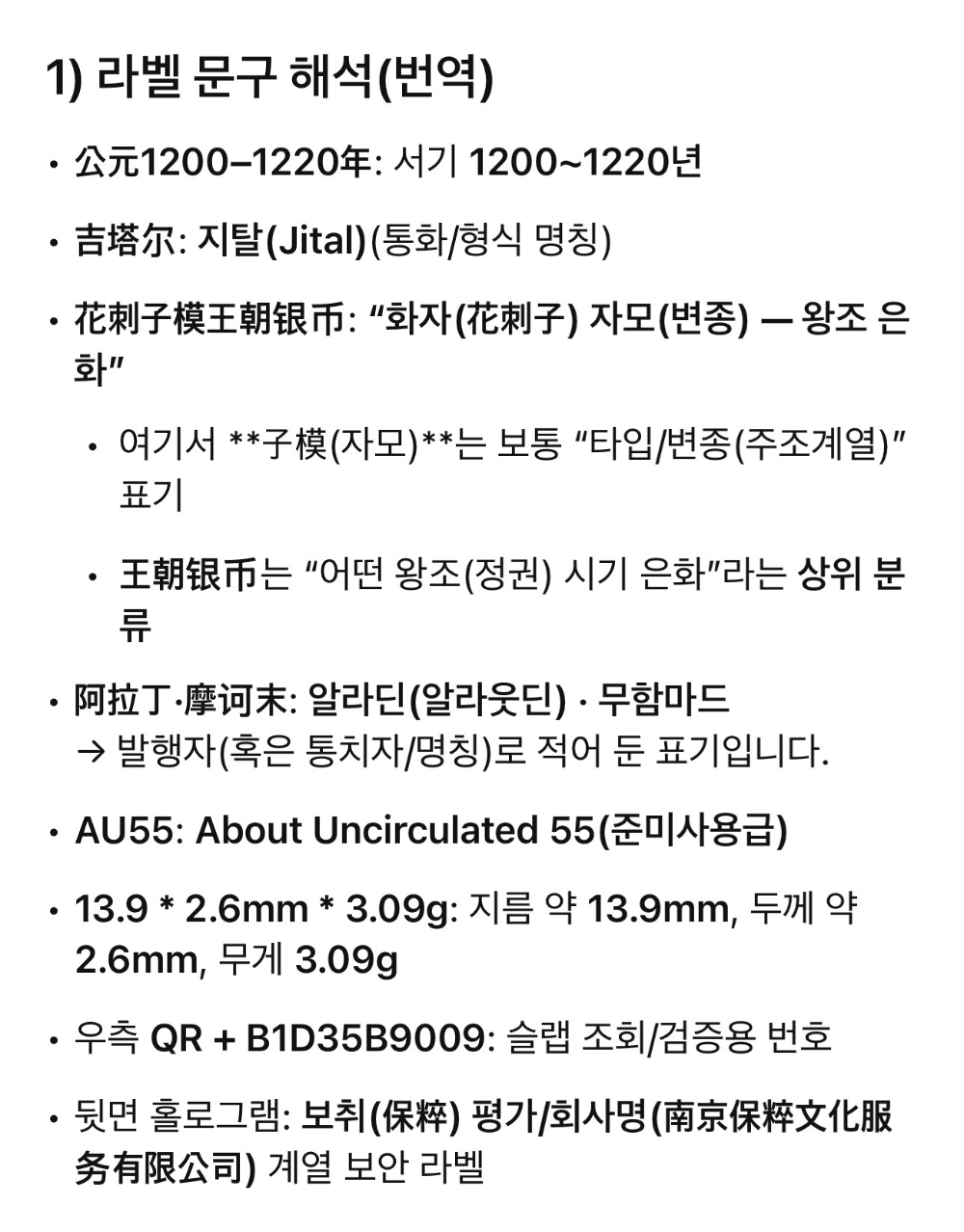 [은화] 1200-1220년 실크로드 은화 “지탈” AU 55