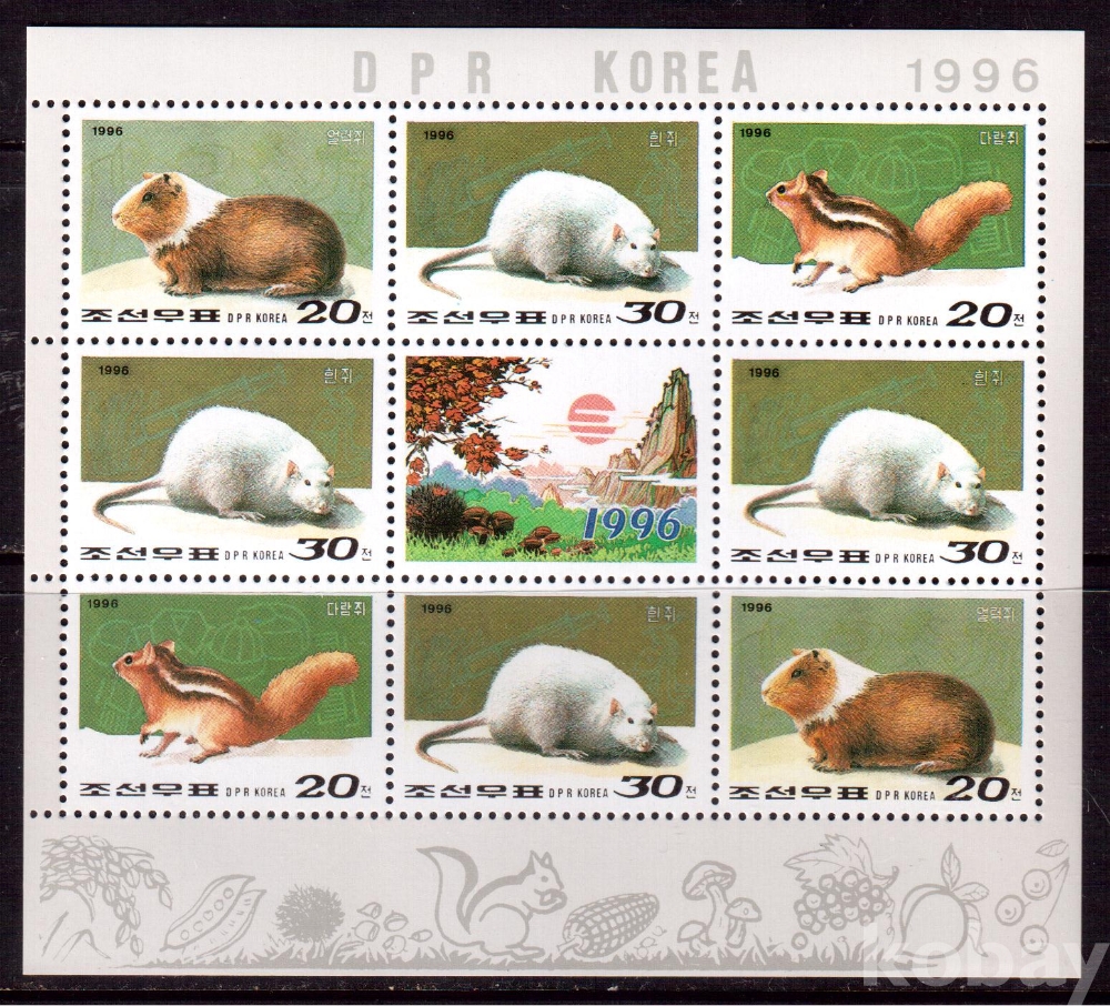 (동물) 북한 1996.1.1 주체85(1996)년 새해우표 sheetlet of 8+label MNH